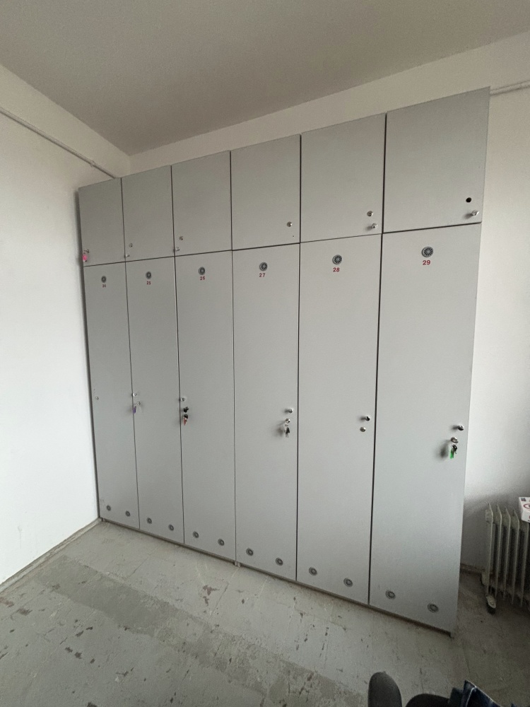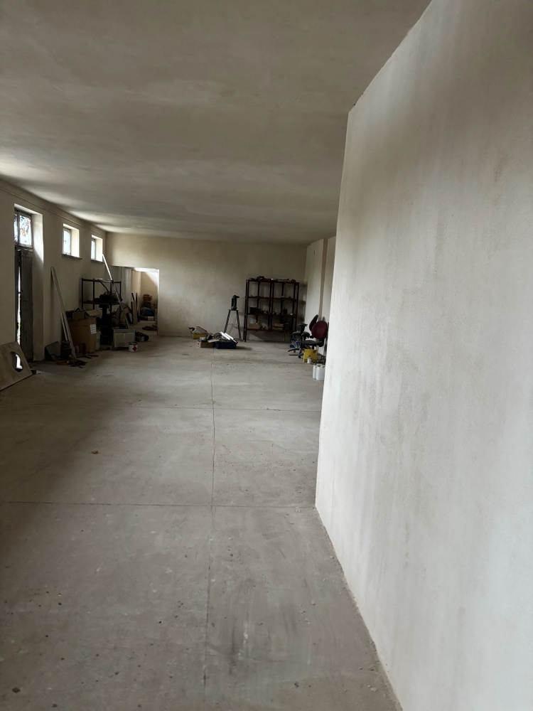 Wysokie, jasne pomieszczenia (wys. > 3,3 m), czysta posadzka betonowa, układ z dużą salą główną oraz kilkoma pomieszczeniami pomocniczymi (biuro/mała produkcja/zaplecze).