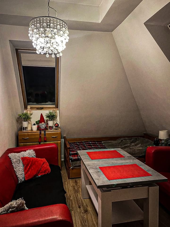 Ogrzewanie poprzez piec dwufunkcyjny (brak opłat przy wyjeździe). Większość wyposażenia wymieniona w ciągu ostatnich 3-5 lat. Wyposażenie może różnić się w niewielkim stopniu od tego na zdjęciach (wersalka zamiast czerwonej kanapy). Wyposażenie w cenie - gotowe do wprowadzenia.