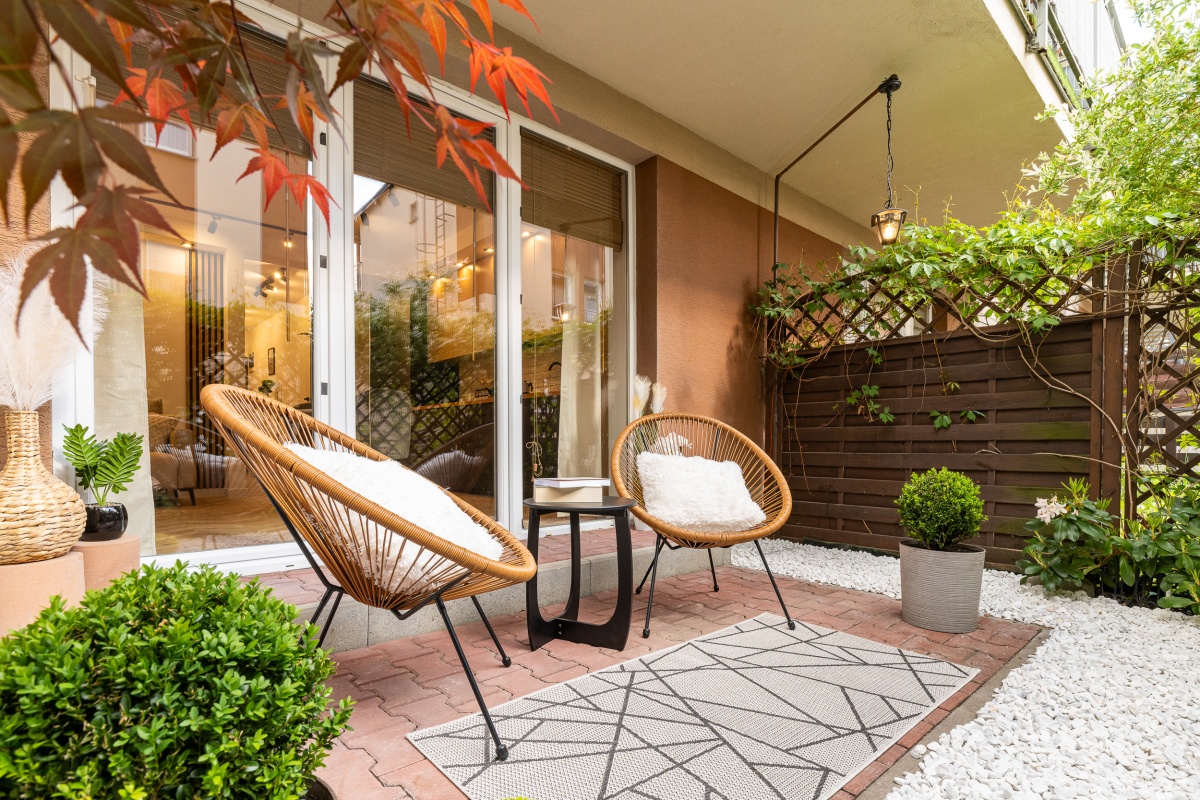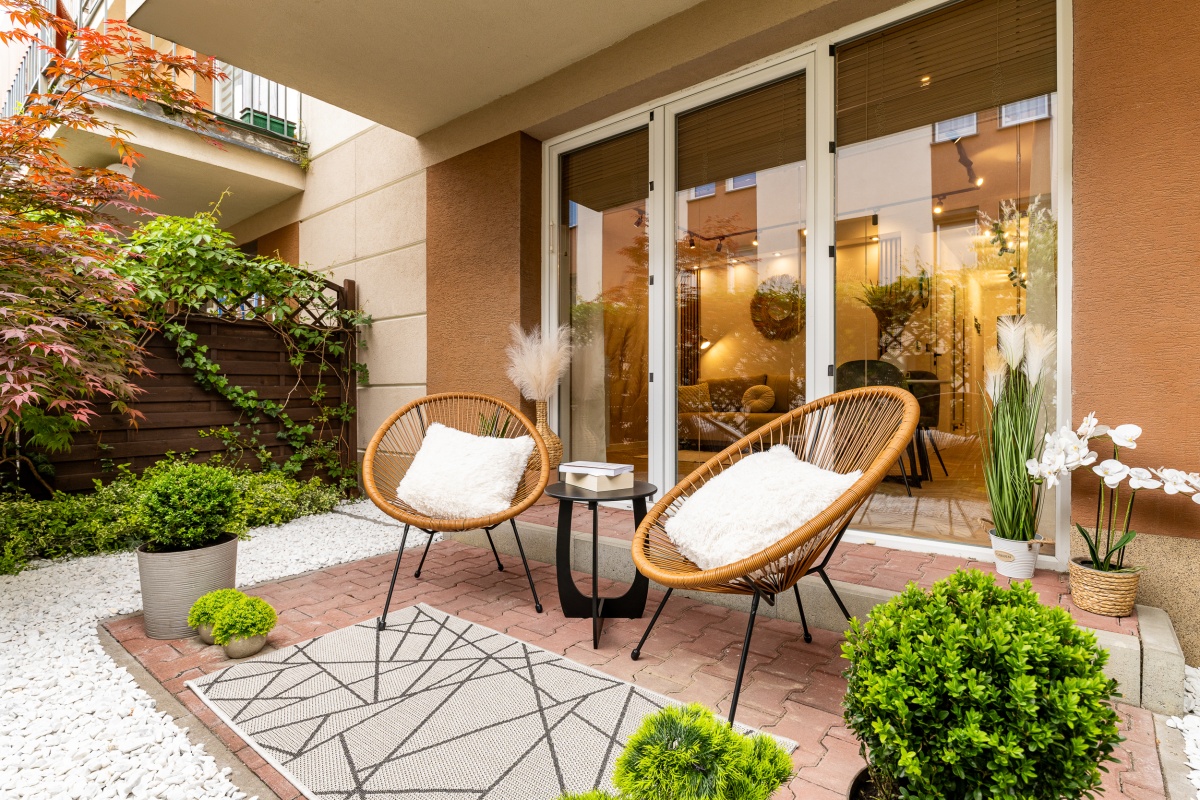 Prywatny ogródek/taras z ładnymi roślinami