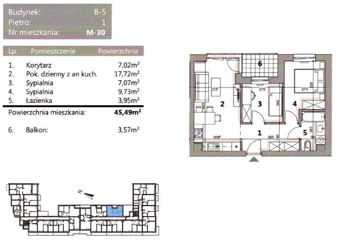 Mieszkanie w budynku przy ul. Zamojskiej 25 oddanym do użytku na początku 2023r. Lokal znajduje się w stanie deweloperskim. Nie były w nim wykonywane jeszcze żadne prace wykończeniowe po odbiorze lokalu od dewelopera. Stan aktualny na zdjęciach. Mieszkanie rozkładowe i widne. Atutem trzy pokoje (pokój dzienny z aneksem kuchennym oraz dwie sypialnie) przy stosunkowo niedużym metrażu (45,49 m2). Dodatkowo komórka lokatorska o powierzchni 1,70 m2. Brak przynależnych miejsc postojowych.
