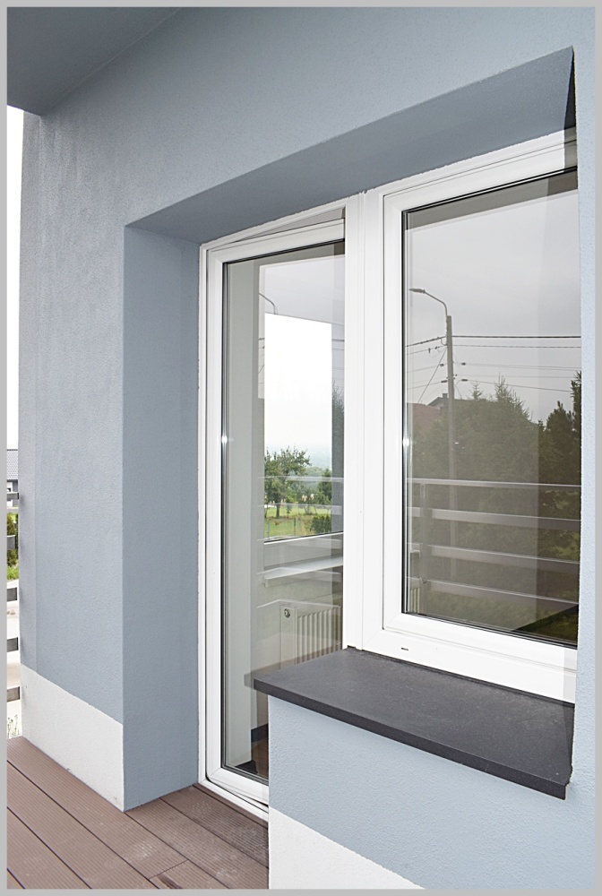 * Okna- PCV uchylno-rozwierane, szklenie zespolone dwu szybowe, mikrowentylacja.