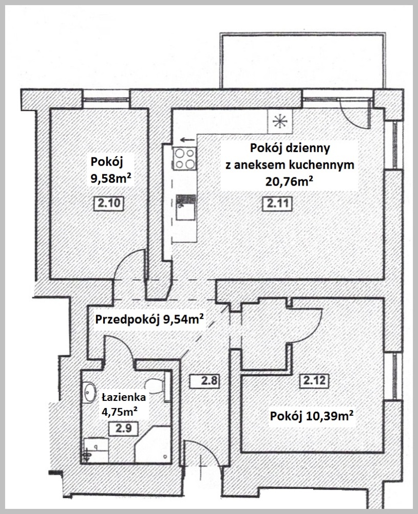 - Pokój 9,58 m²,