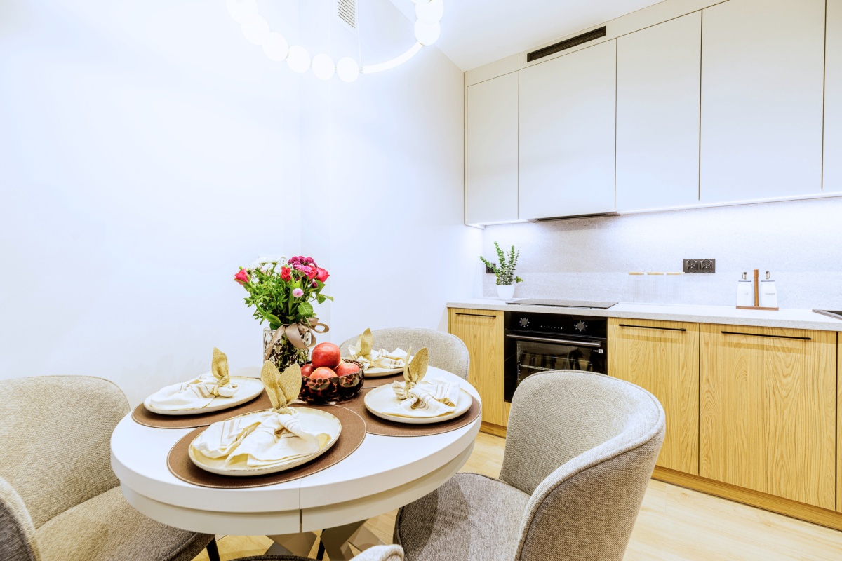 W pełni wyposażona kuchnia to raj dla miłośników gotowania, stworzysz tam ulubione posiłki. AGD nowe z gwarancja : płyta indukcyjna, piekarnik, okap, - wszystko czeka na Ciebie.