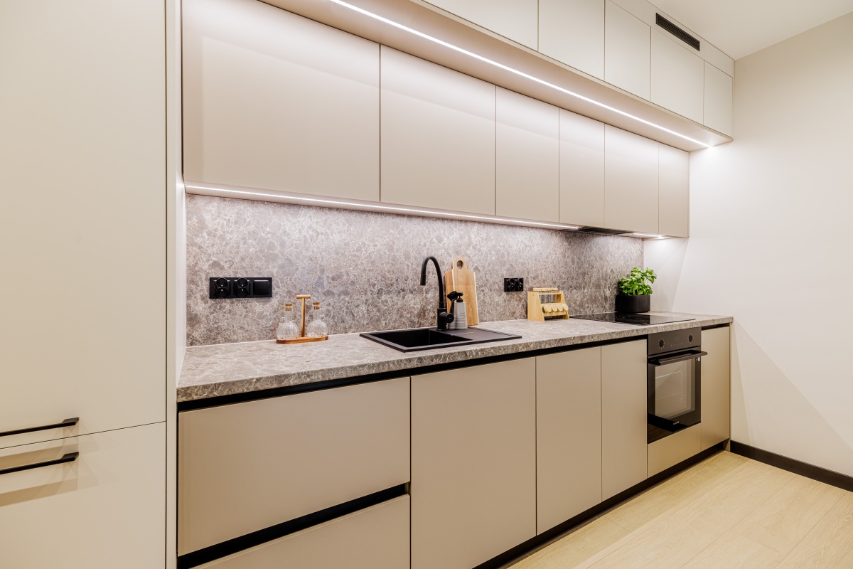 - nowe AGD w cenie: płyta indukcyjna, piekarnik, okap. Lodówka i zmywarka po stronie klienta.