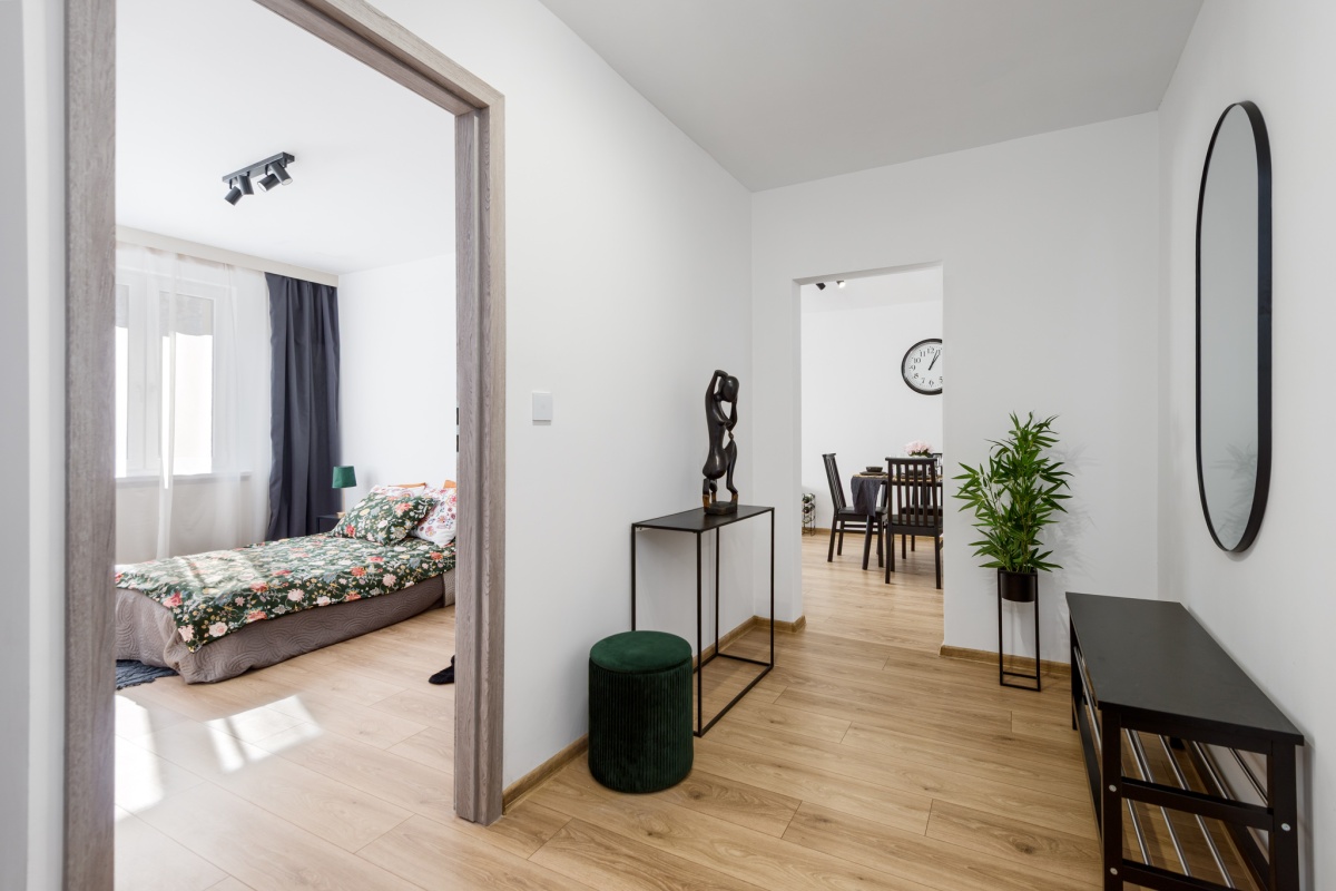 Mieszkanie jest funkcjonalnie rozplanowane: przestronny salon z wyjściem na balkon, duża sypialnia, oddzielna kuchnia oraz bardzo ustawny przedpokój.
