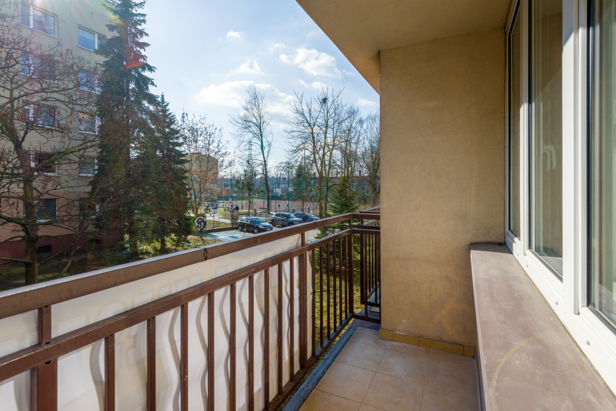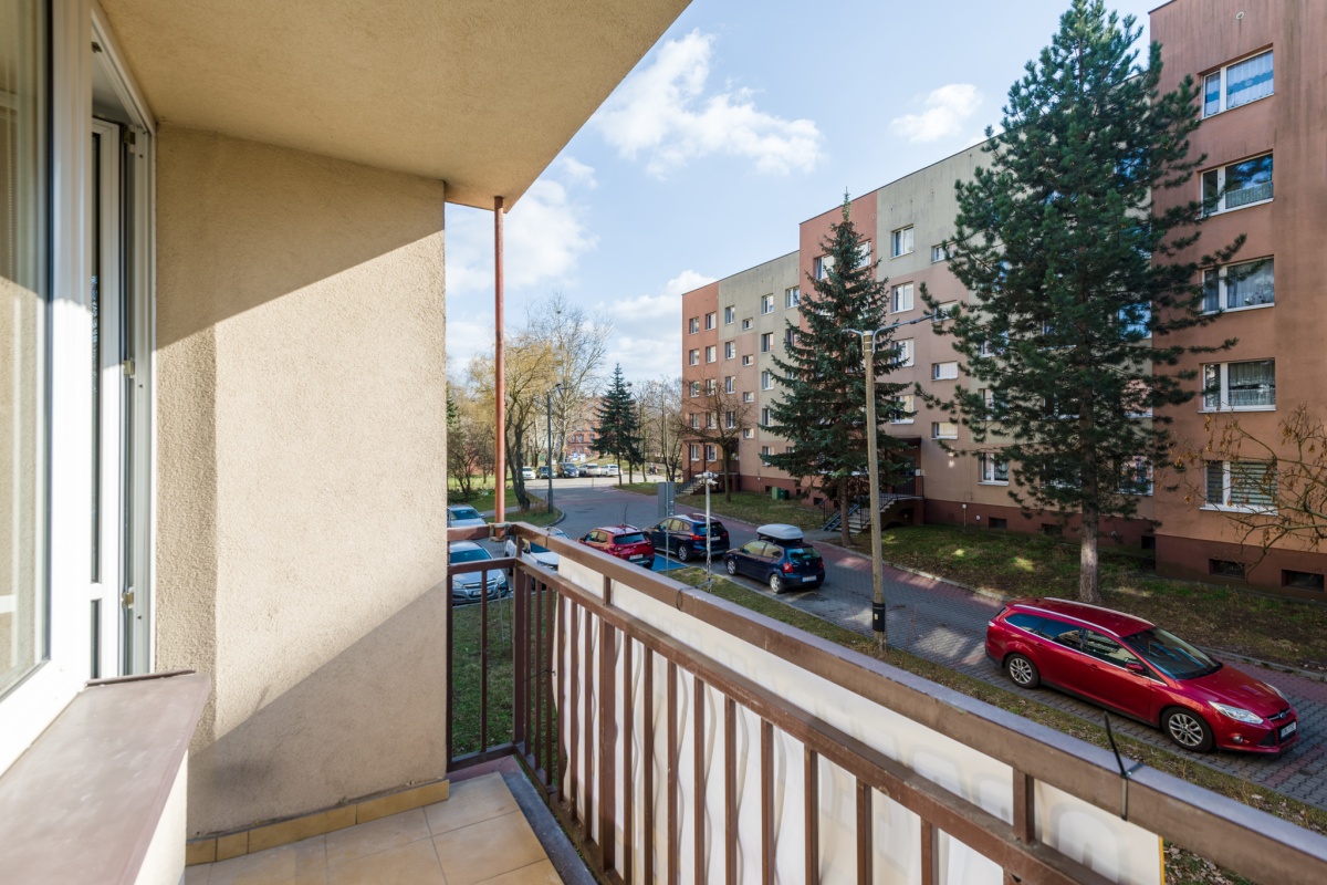 • balkon z widokiem na osiedle