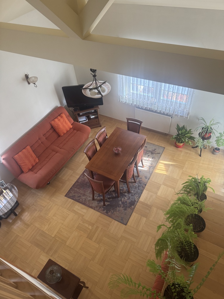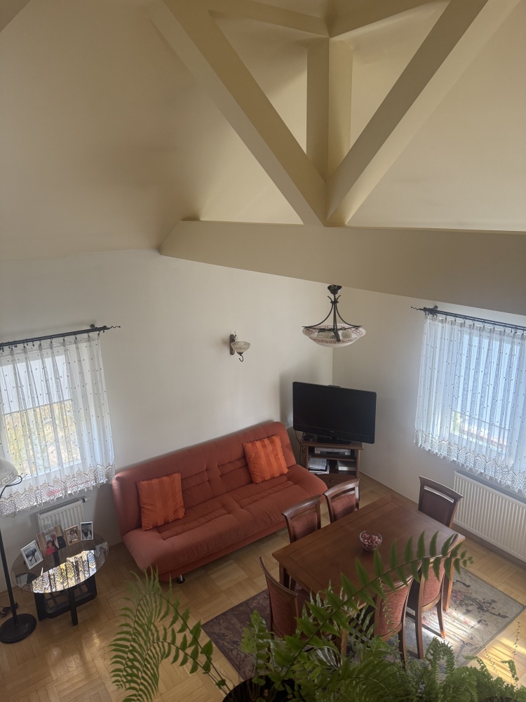 Mieszkanie w spokojnej i zielonej okolicy, blisko centrum Kielc, położone na zamkniętym osiedlu. Pomimo bliskości centrum miasta, w mieszkaniu jest bardzo cicho. Zaletą mieszkania jest jego przestronność. Mieszkanie dwupoziomowe, z atrakcyjną antresolą w pokoju dziennym. Osobna kuchnia z otwartym przejściem do salonu. Mieszkanie wykończone, stan do zamieszkania - po remoncie. W całym mieszkaniu parkiet z drewna bukowego. Blok z 2001 roku z cegły. Okna drewniane.