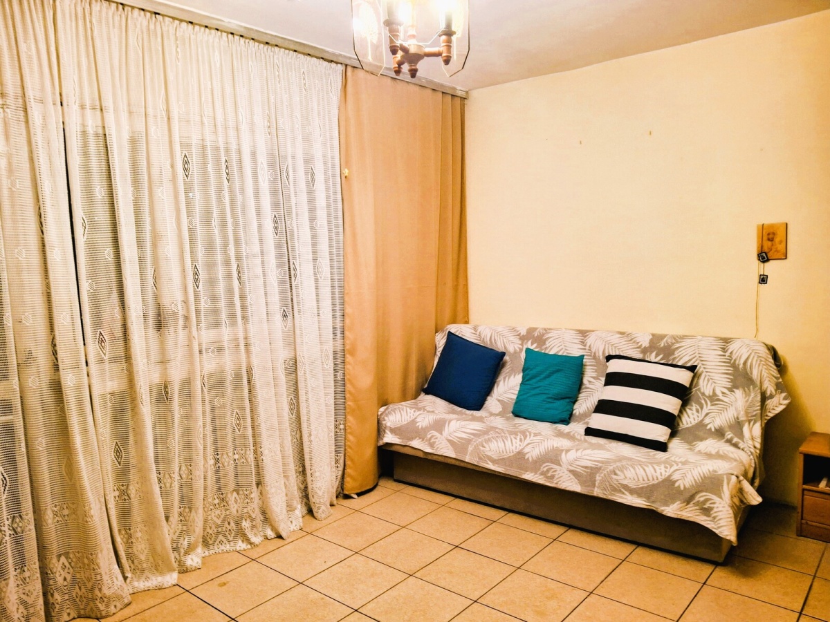 Mieszkanie ma pow. 37 m2 na co składa się duży pokój ( ok. 22 m2 ) z wnęką i wyjściem na całkiem duży balkon z zadaszeniem i odgrodzony od sąsiedniego balkonu.