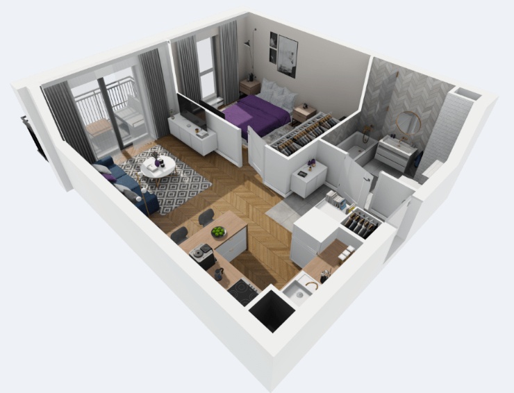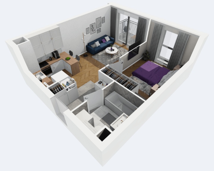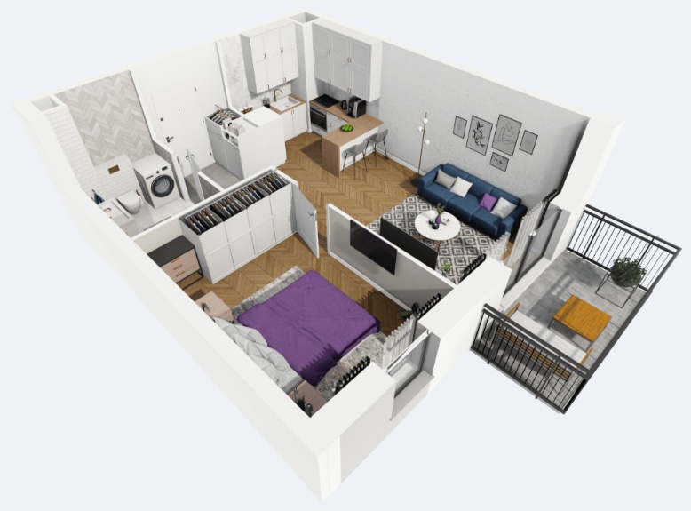 - Funkcjonalny układ: salon z aneksem kuchennym, sypialnia, łazienka, przedpokój,