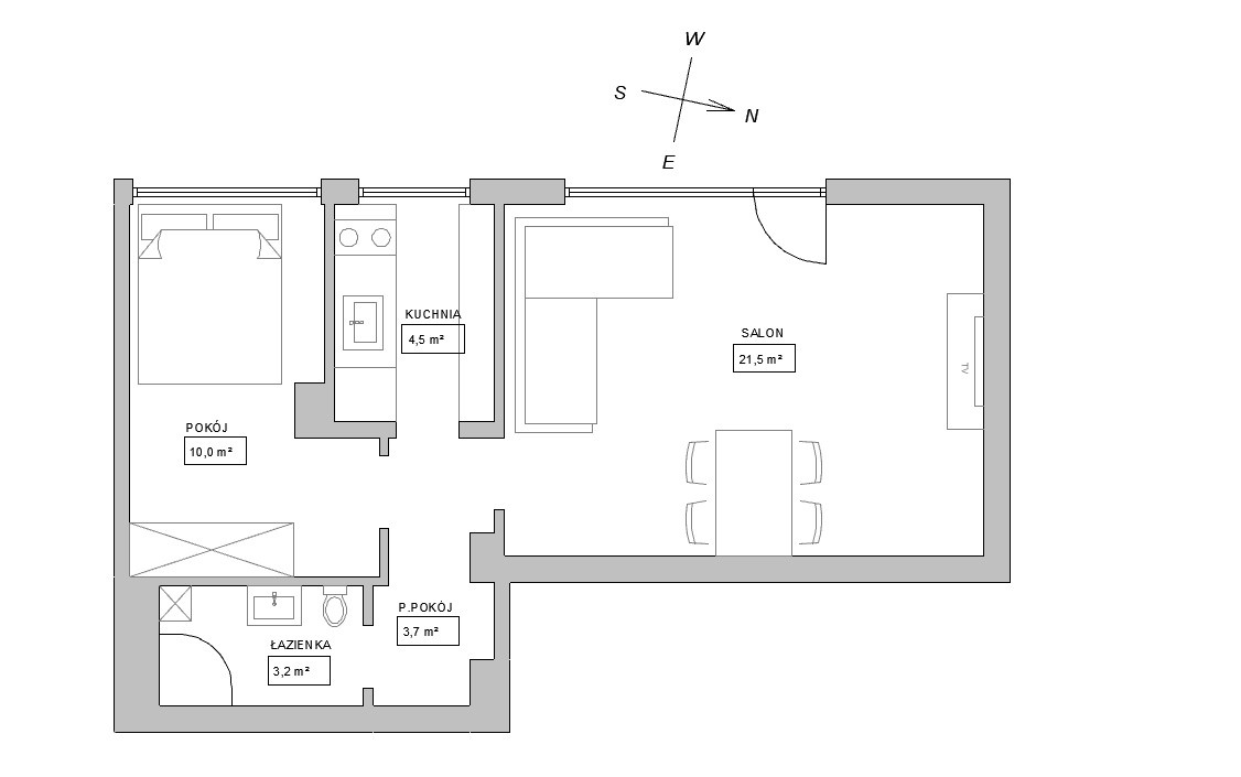 - powierzchnia: 43 m2
