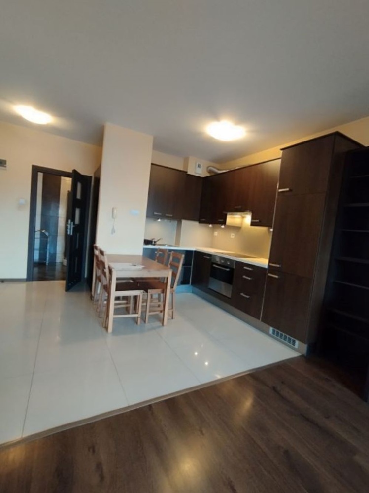Ta nieruchomość ma 43 m² i znajduje się na 4. piętrze w budynku z 2011 roku. Posiada 2 pokoje, kuchnię z wysokiej jakości wyposażeniem oraz dwa balkony. Mieszkanie jest gotowe do zamieszkania, wyposażone w meble, lodówkę, piekarnik i płytę grzewczą.