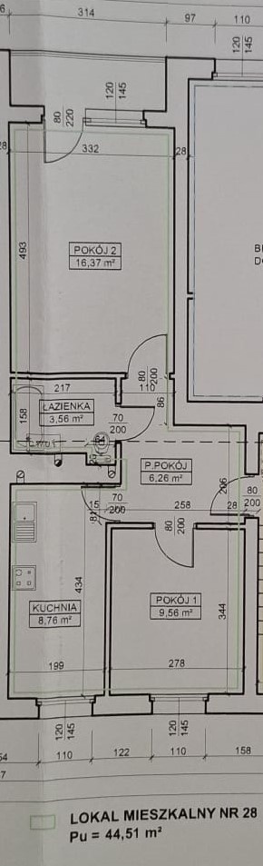2-pokojowe mieszkanie 44,51 m² – Nowa Huta, Kraków