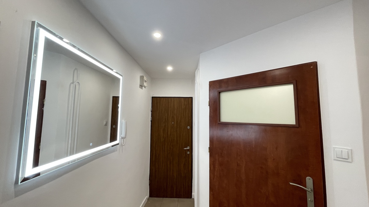 W 2014 roku mieszkanie przeszło generalny remont (panele, płytki, nowe drzwi z ościeżnicami, okna PCV) i przebudowę (połączenie kuchni z salonem, powiększenie łazienki). Obecnie mieszkanie jest odświeżone i nadaje się do zamieszkania.