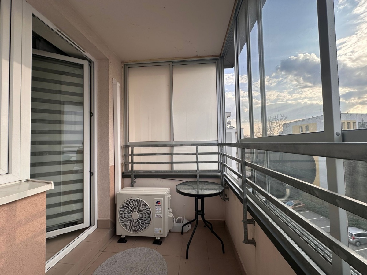 Okna wychodzą na trzy strony świata, dzięki czemu mieszkanie jest doskonale doświetlone. Zabudowany balkon z rozsuwanym przeszkleniem pozwala korzystać z dodatkowej przestrzeni niezależnie od pogody, idealne miejsce na poranną kawę, miniogród czy bezpieczną przestrzeń dla dzieci i pupili. Mieszkanie posiada klimatyzację.