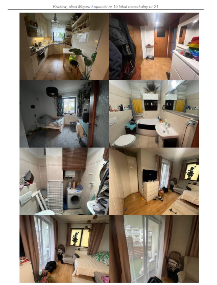 2. udziału 1/2 części nieruchomości lokalowej obejmującej samodzielny lokal mieszkalny nr 21 o pow. 49,02 m2 zlokalizowany w budynku mieszkalnym wielolokalowym nr 15 w Krakowie przy ulicy Majora Łupaszki, dla którego Sąd Rejonowy dla Krakowa – Podgórza w Krakowie IV Wydział Ksiąg Wieczystych prowadzi KW o numerze: KR1P/00468928/4, wchodzącego w skład masy upadłości Andrzeja Cabaja
