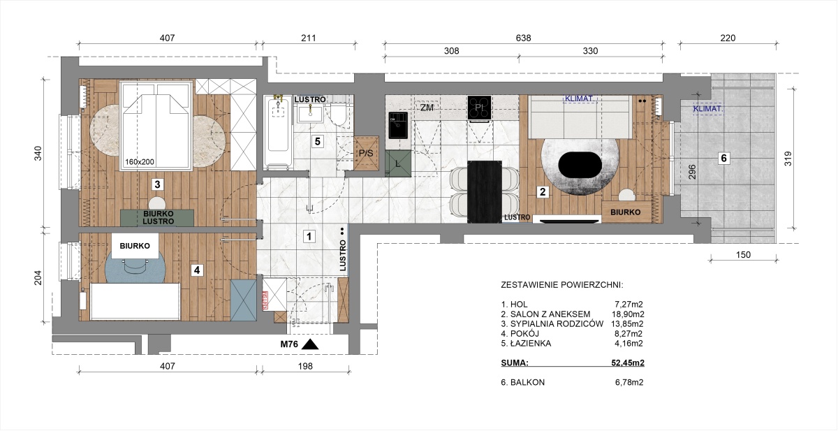 3 pokoje | pow. 52,45 m² | poziom +5