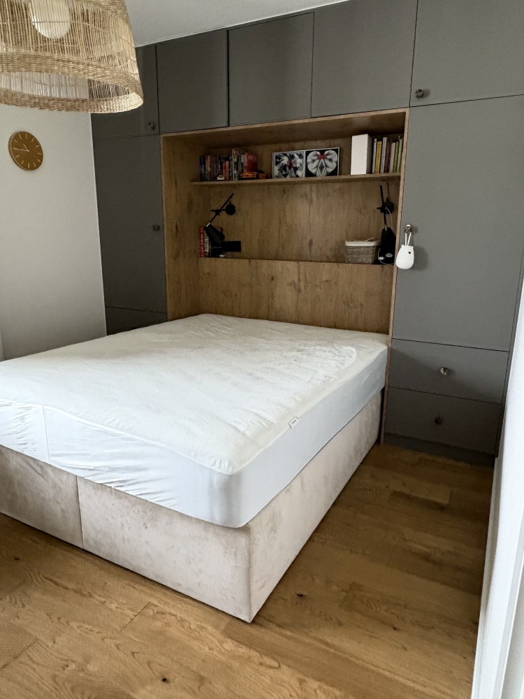 Mieszkanie jest w pełni umeblowane i wyposażone w sprzęt AGD. Wykończone w wysokim standardzie - gotowe do zamieszkania. Ekspozycja mieszkania to północ/zachód. W każdym pomieszczeniu trwała zabudowa - kuchnia pod wymiar, szafy wbudowane w przedpokoju i mniejszym pokoju, zabudowa sypialni oraz łazienki.