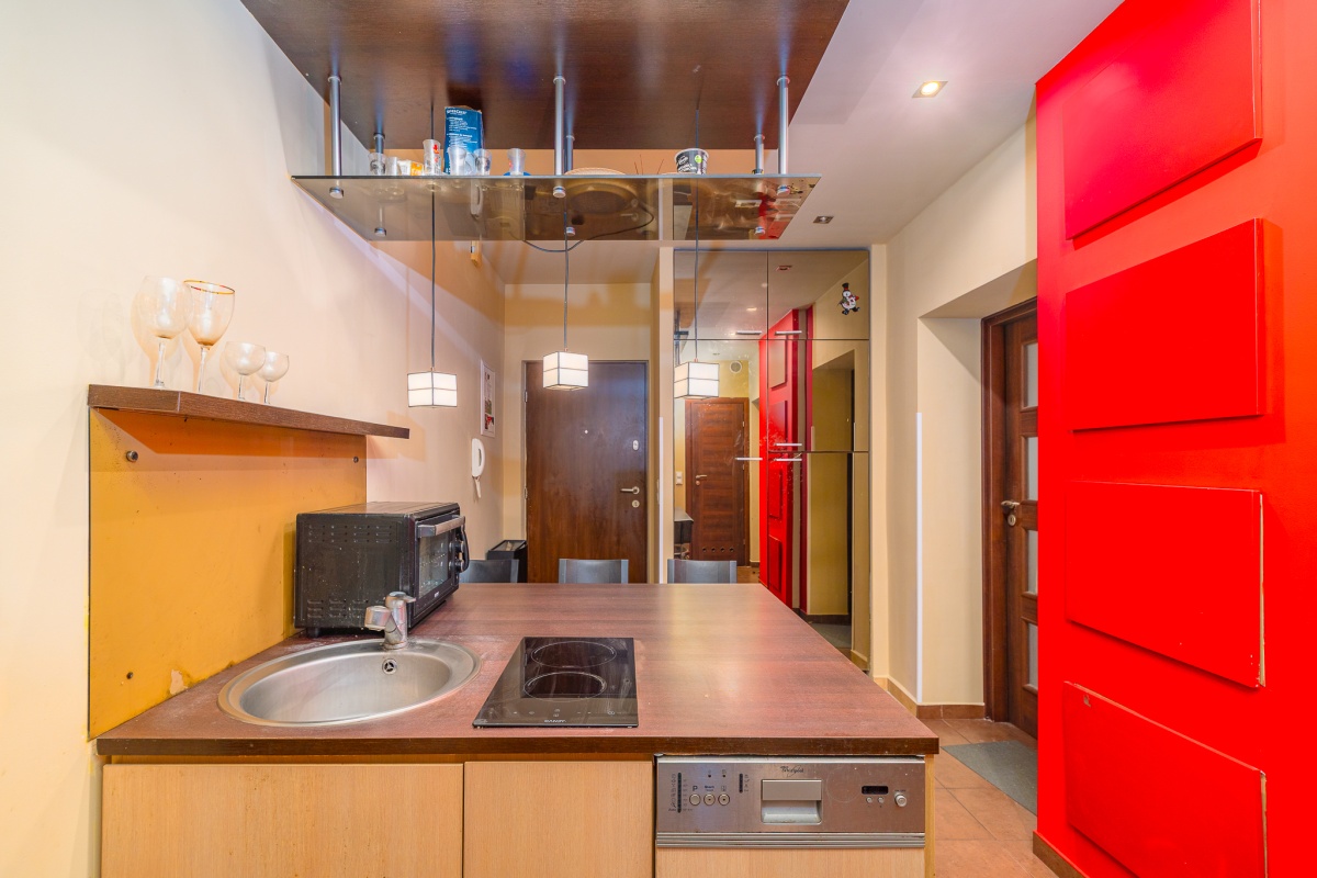 - aneks kuchenny z jadalnią umiejscowiony w dawnym przedpokoju o powierzchni ponad 10 metrów i wymiarach 4,6 na 2,2 metrów