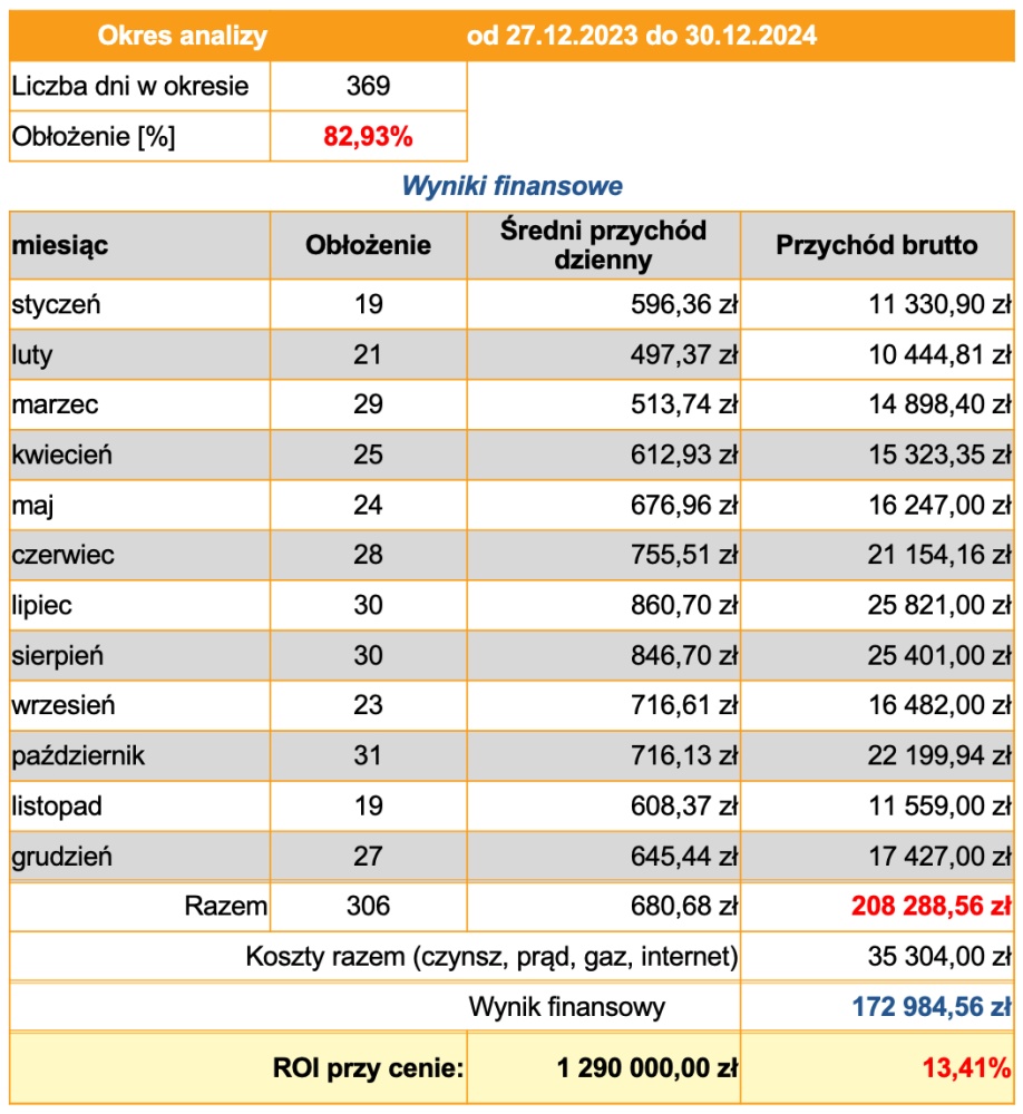 - Zysk brutto ok. 173.000,- zł (po odjęciu kosztów stałych)