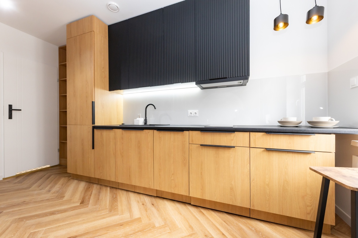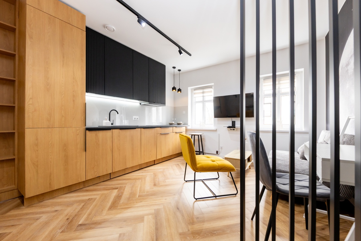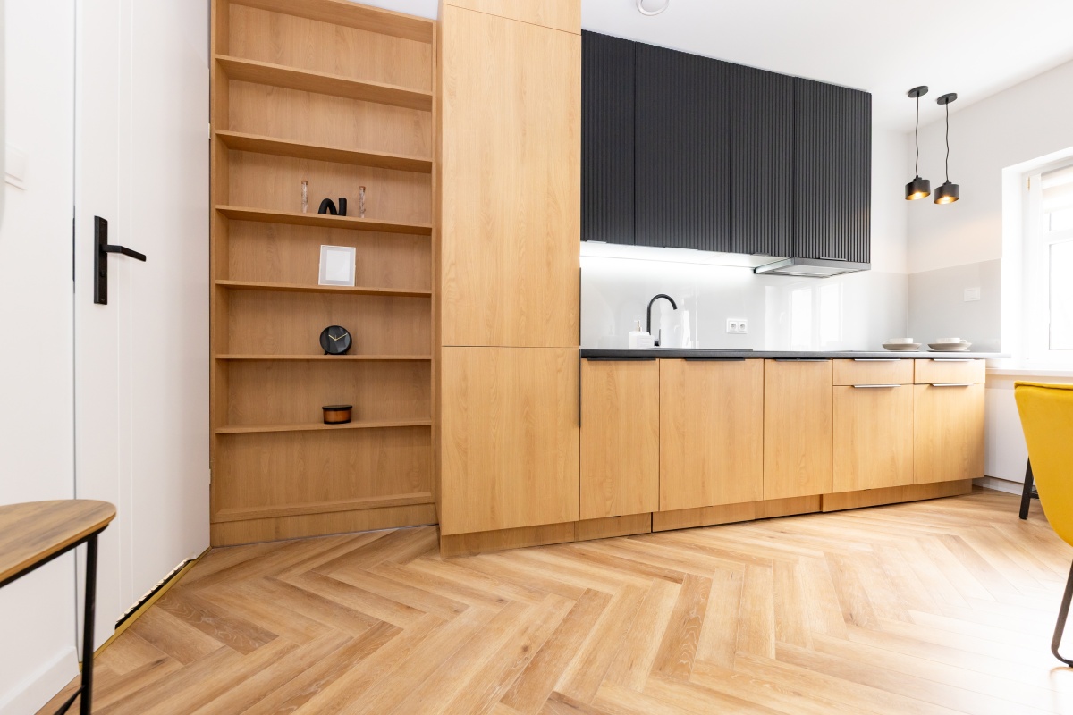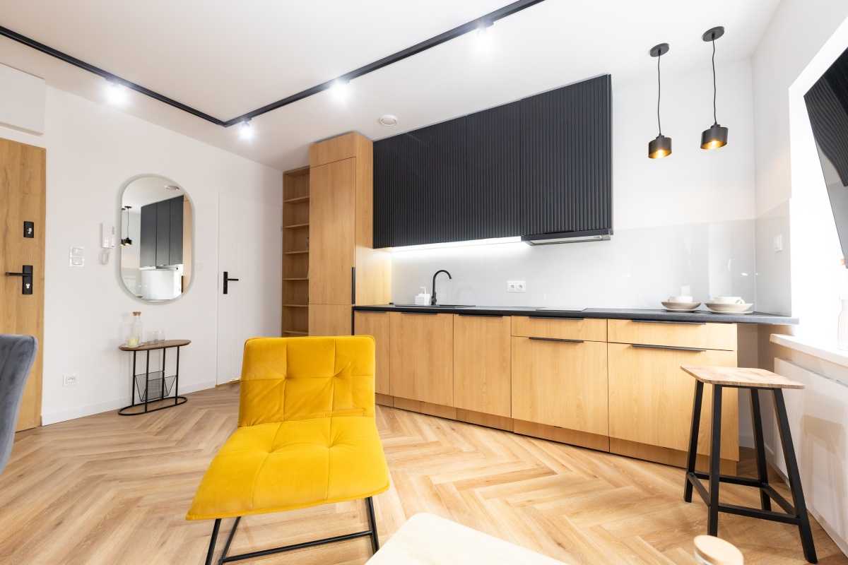 Wykończenie: Podłogi w klasycznej jodełce, nowoczesna łazienka z WC w zabudowie i prysznicem, oświetlenie LED, drzwi antywłamaniowe.