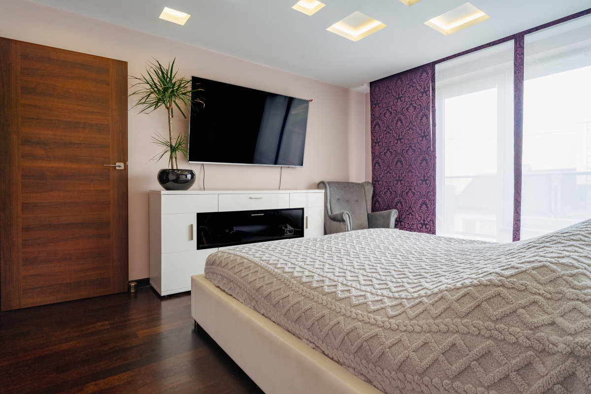 Sypialnia główna (19,5 m²) – z dużą garderobą i podwieszanym, podświetlanym sufitem