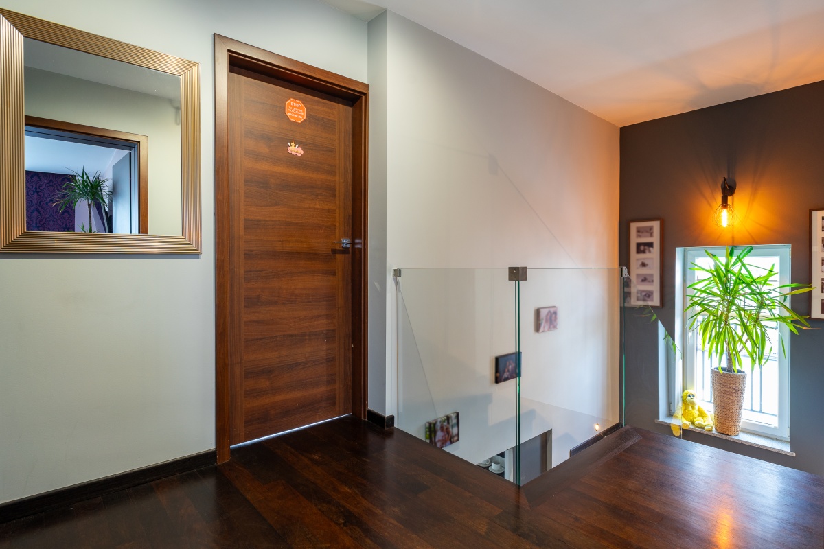 Nieruchomość wykończona z dbałością o każdy szczegół – projekt wnętrza przygotowany przez architekta, z wykorzystaniem materiałów najwyższej klasy (m.in. drewno merbau – podłogi, naturalny kamień dekoracyjny, podwieszane sufity,podświetlane led).