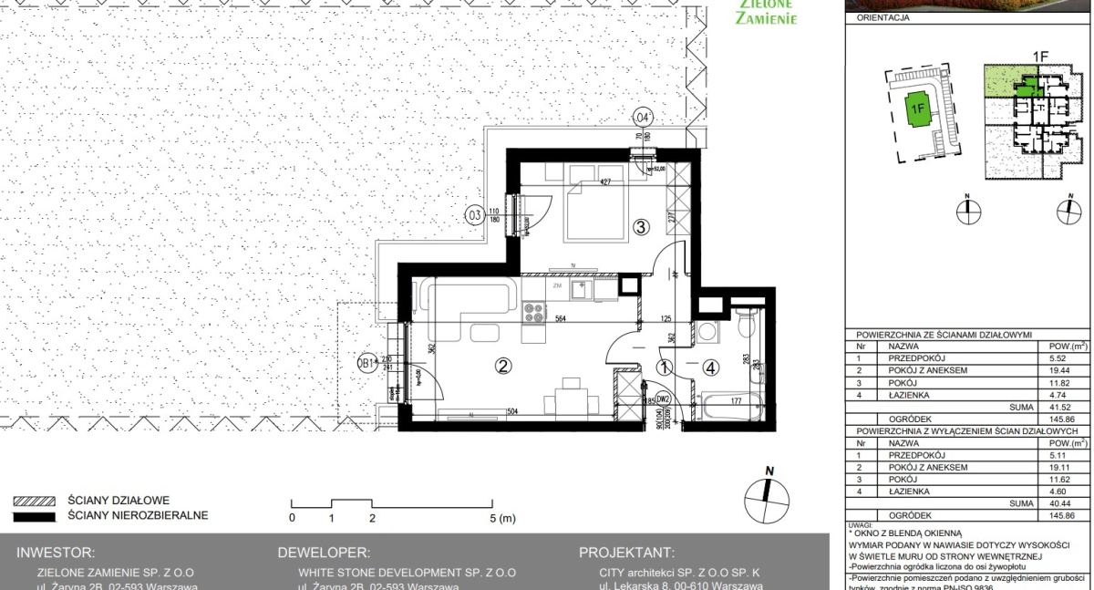 2 pokoje 41m2/ogródek 145m2/rowerowania w Zamienie