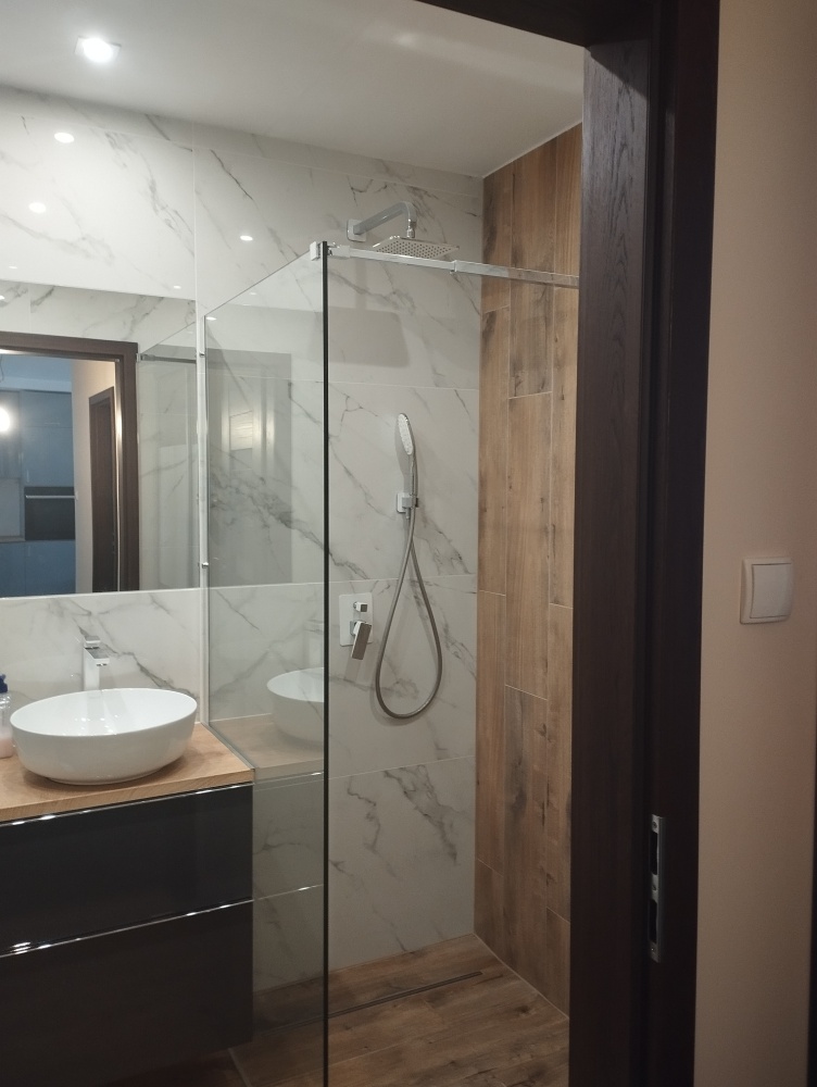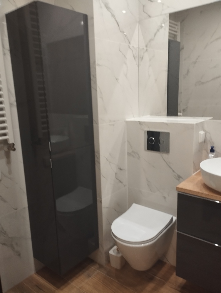 Mieszkanie zostało wykończone z najwyższą dbałością o detal, a kuchnię wyposażono w wysokiej klasy sprzęt (lodówka, zmywarka, piekarnik, płyta indukcyjna) Sprzęt jest nowy. Łazienka posiada kabinę prysznicową i miejsce na pralkę.