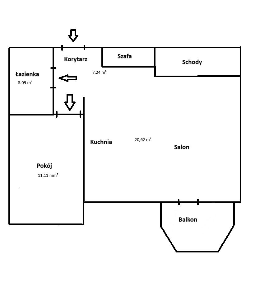 Pokój 1: 11,11 m² (idealny na gabinet lub sypialnię)