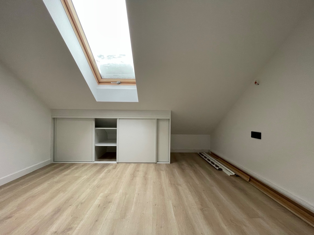 Na poddaszu mieszczą się dwa pokoje, garderoba i łazienka.
