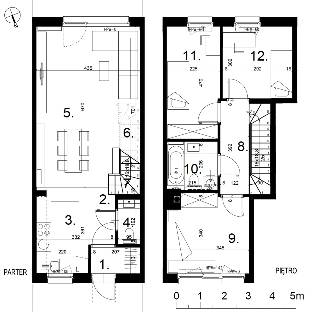 - Podzielone na dwie strefy: na dole duży, przestronny salon z otwartą kuchnią, toaleta. Na górze strefa prywatna z 3 sypialniami i łazienką.