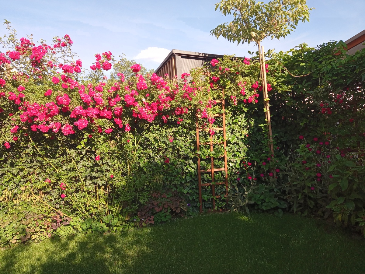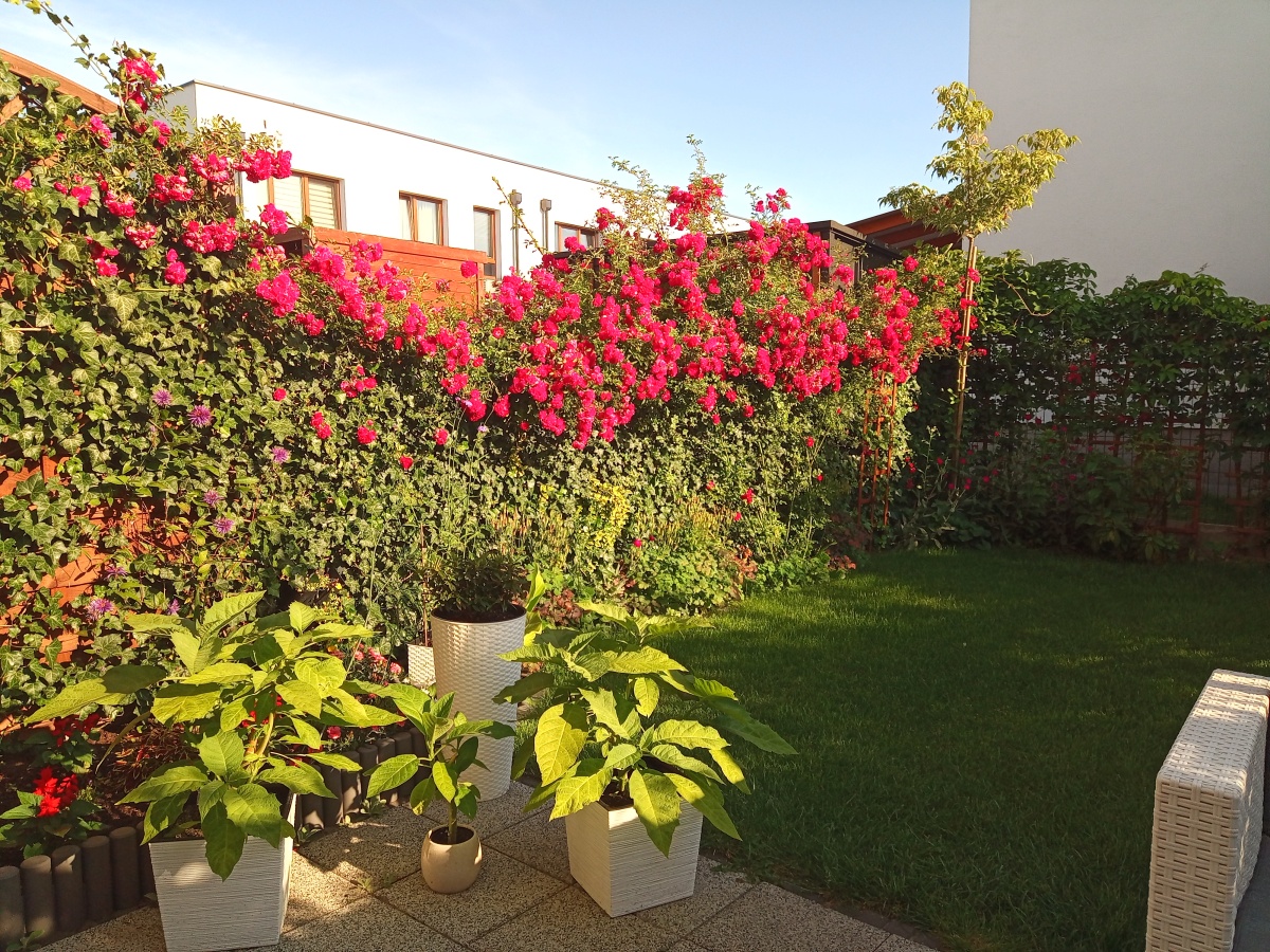 - Zagospodarowany, pełen zieleni ogródek.