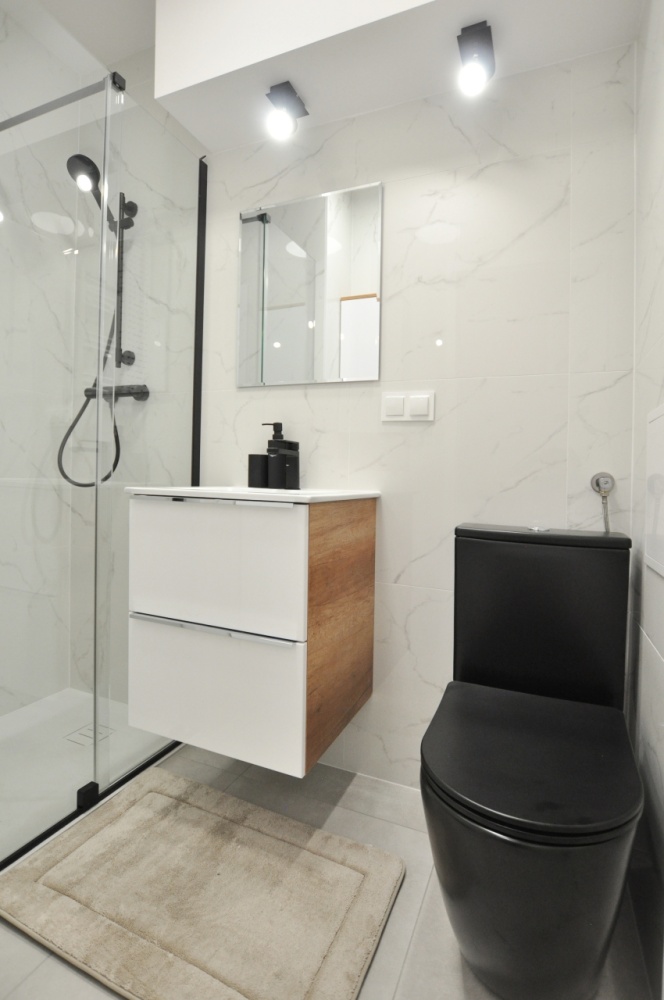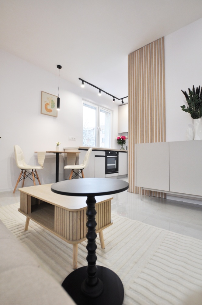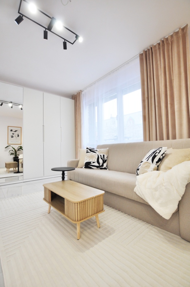 - mieszkanie wykończone w spójnym, nowoczesnym stylu: jasne kolory, świetne doświetlenie, czarne akcenty i wysokiej klasy detale
