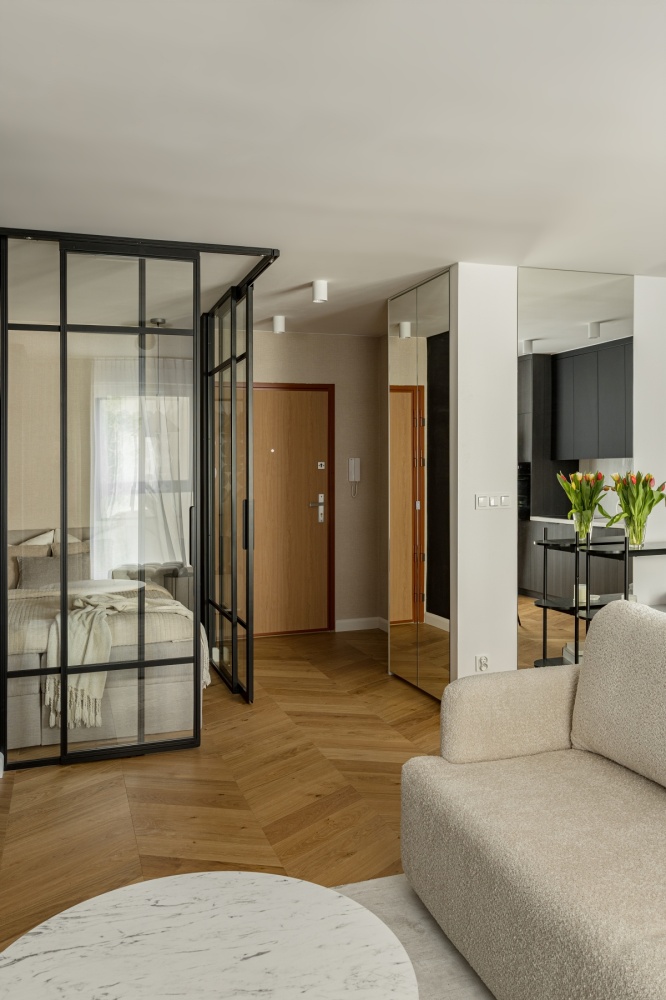 *Powierzchnia mieszkania: 39,63 m2, składa się z salonu z aneksem kuchennym, łazienki oraz przeszklonym typu LOFT aneksem sypialnianym. Aneks można także zaadaptować na miejsce do pracy.