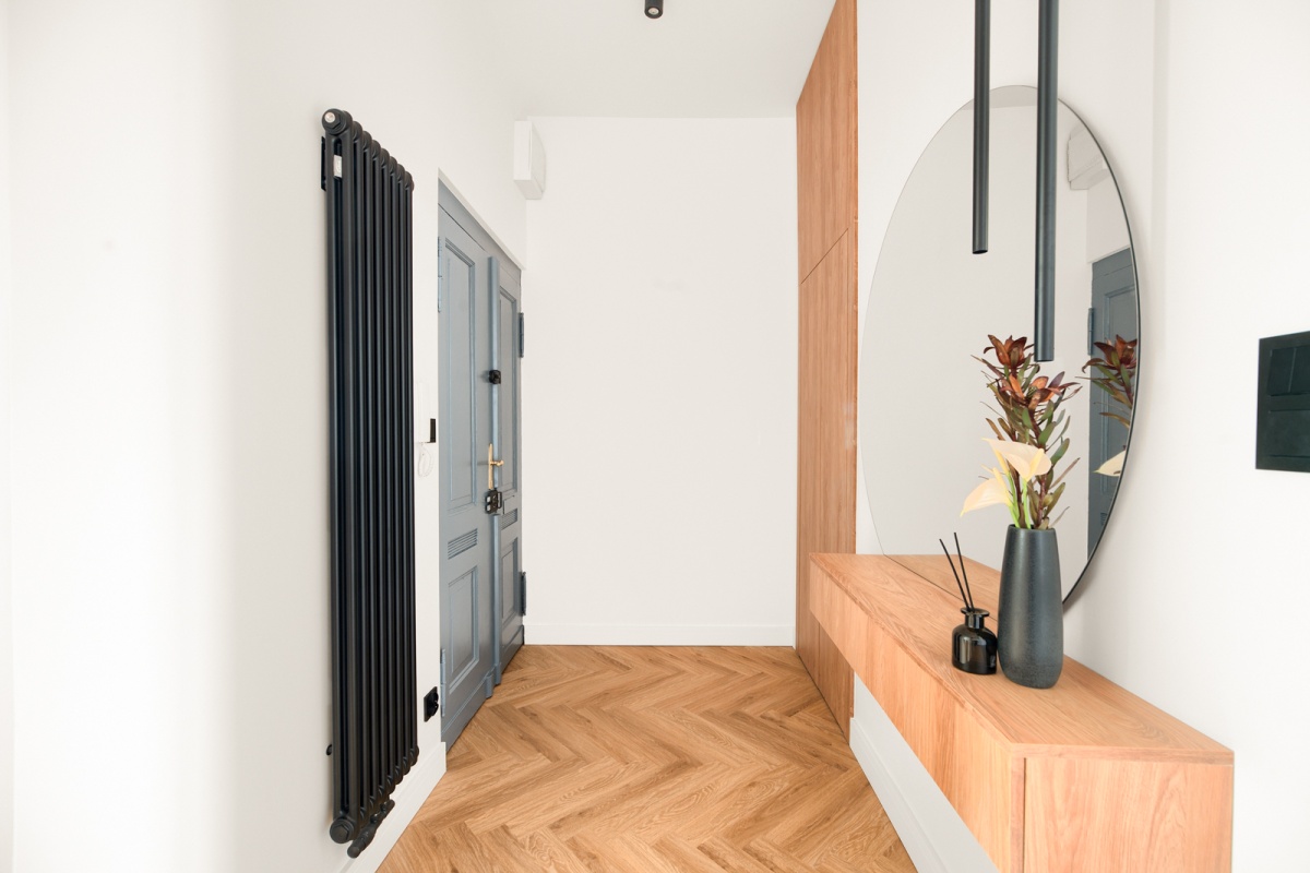 - na podłodze najwyższej jakości panel winylowy ułożony w jodełkę,