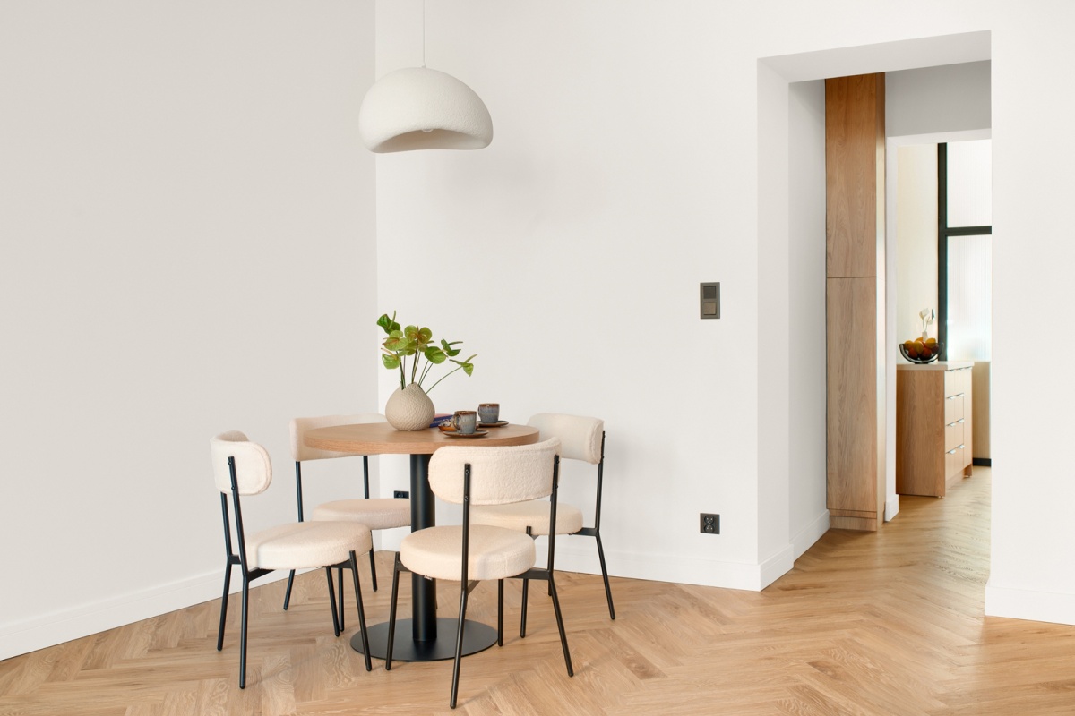 - w każdym pomieszczeniu stylowe, dodające charakteru oświetlenie, - wszystkie meble z wyjątkiem łózka wykonane na zamówienie przez stolarza,