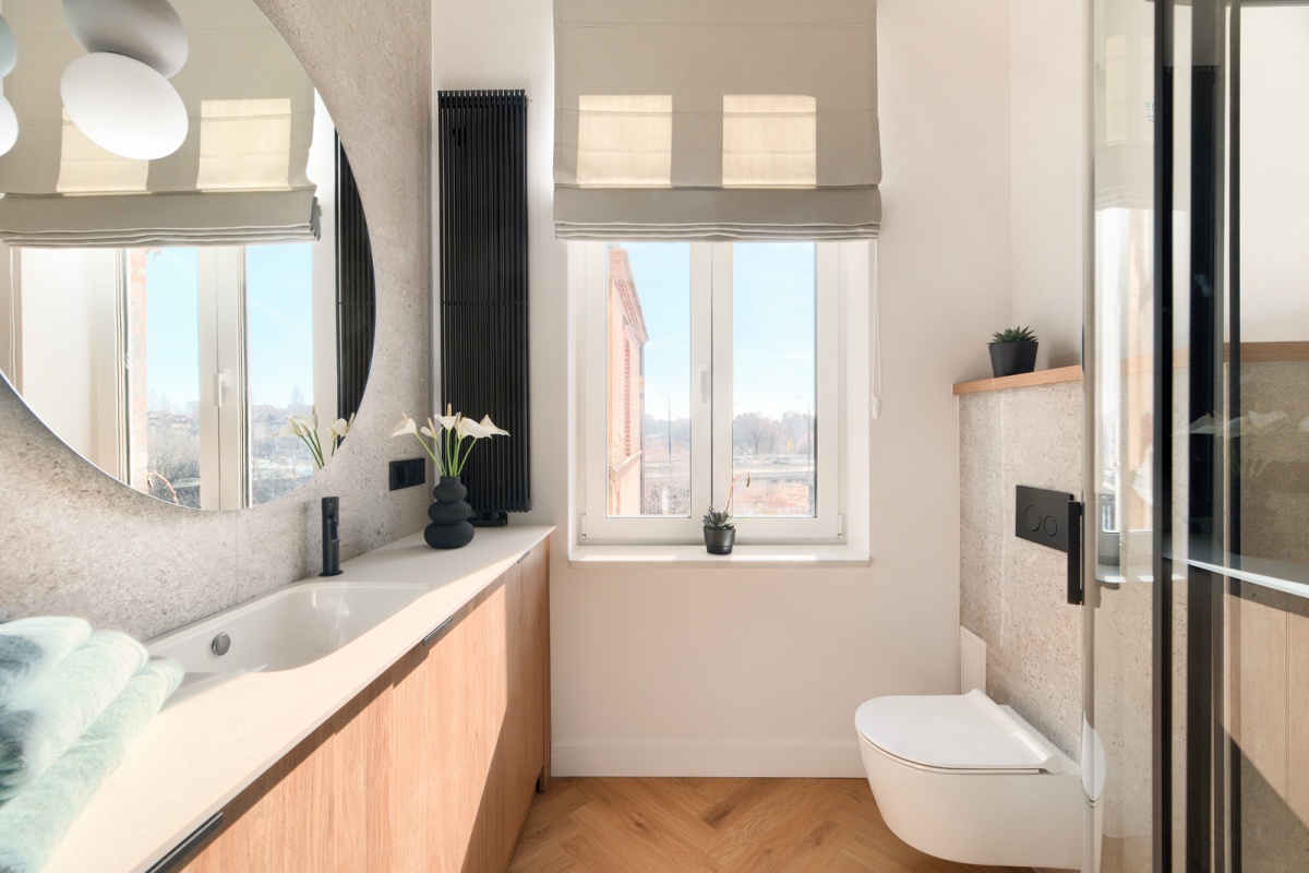 - w całym mieszkaniu kamienne parapety.