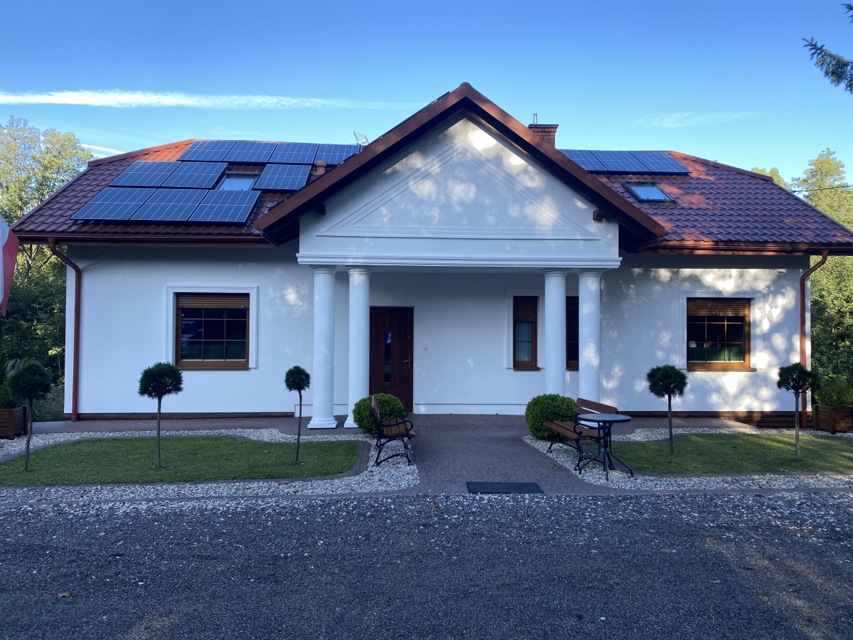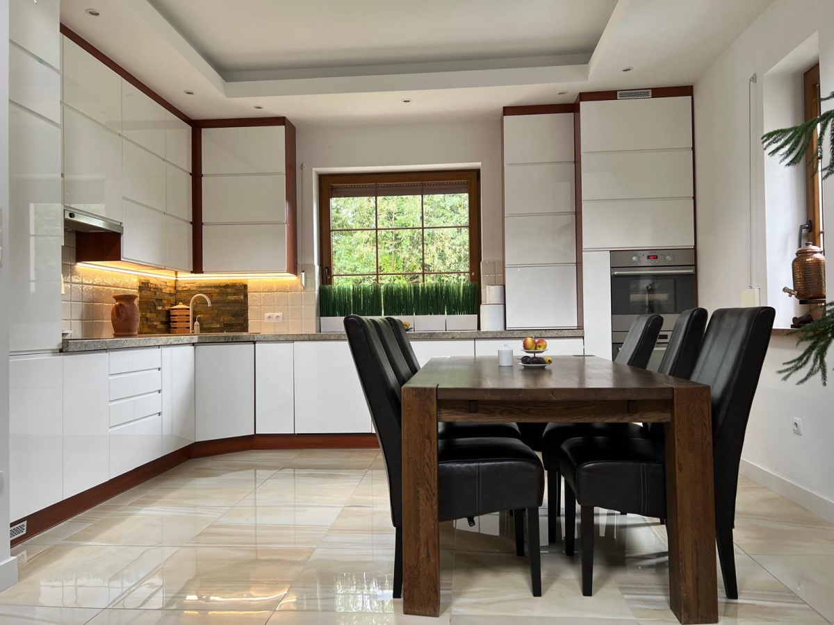 Dom w otoczeniu zieleni ok. 200 metrów pow. mieszkalnej + zadaszony taras 35 metrów + 170 metrów powierzchni garażowych w wysokim standardzie, ogrzewany, klimatyzowany z węzłem sanitarnym, wiec może posłużyć np. jako powierzchnia pod magazyn, E-sklep lub dowolny biznes przy domu (u nas spełnia funkcje garażu dla prywatnej kolekcji samochodów). Dom położony w atrakcyjnej lokalizacji (15 min. do centrum Rzeszowa i 5 min. do centrum Łańcuta, najbliższy przystanek autobusowy 100 metrów, przedszkole, szkoła 2,5 km. Dom wykończony w wysokim standardzie, w każdym pokoju zabudowane na wymiar szafy, nowoczesna kuchnia i łazienka. W domu jest kilka źródeł ogrzewania. Piec gazowy nowy (dwufunkcyjny), bardzo duża fotowoltaika działająca jeszcze na starych korzystniejszych zasadach (12 kW), wiec możliwość bez kosztowego ogrzewania prądem, dwa kominki (w tym jeden z płaszczem wodnym, ogrzewa cały dom), dwie klimatyzacje z funkcją grzania a na powierzchni całego parteru ogrzewanie podłogowe zasilane gazem lub kominkiem. Dom graniczy z dwóch stron z zielonymi (leśnymi) terenami gminnym co daje gwarancje prywatności i przestrzeni bez sąsiedztwa ( z każdego okna widok na zieleń).