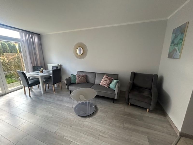 - salon z aneksem kuchennym z którego jest wyjście na taras oraz ok. 30m2 ogródek,