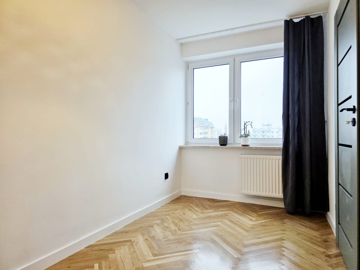 Salon, sypialnia, łazienka z wanną, oddzielna kuchnia (istnieje możliwość połączenia z salonem) oraz niewielki balkon. Piękne, drewniane podłogi (po renowacji).