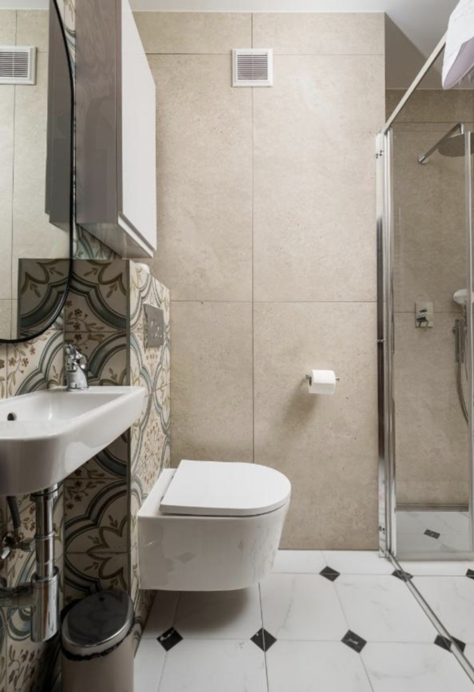 - łazienki z dużym prysznicem,