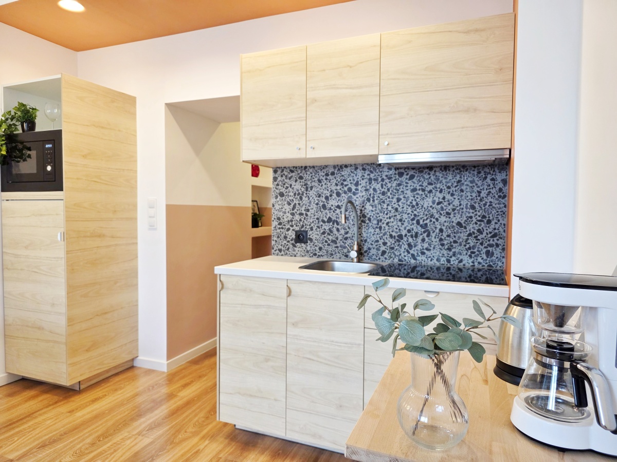 - aneksu kuchennego (płyta indukcyjna, okap, zlew, lodówka z zamrażarką, kuchenka mikrofalowa, szafki kuchenne - wszystko nowe),
