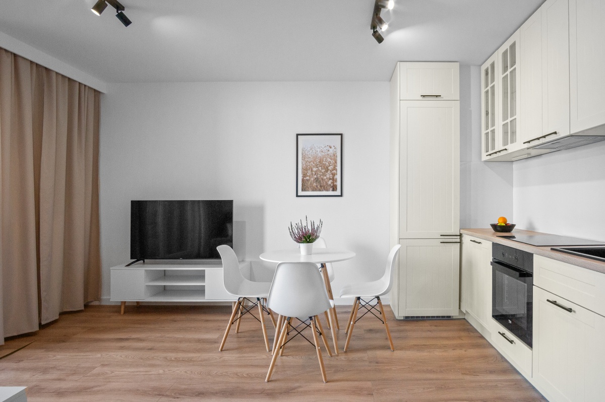 For sale: a 2-room apartment in Scandinavian style available immediately located in the prestigious Miasteczko Greenwood estate located on Monteverdiego Street in Warsaw, Białołęka district. Finished to a high standard.