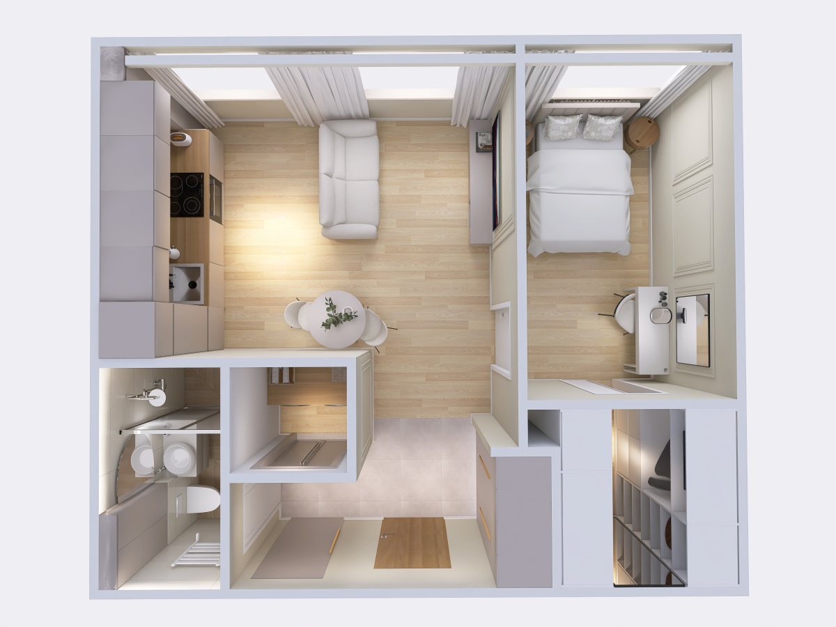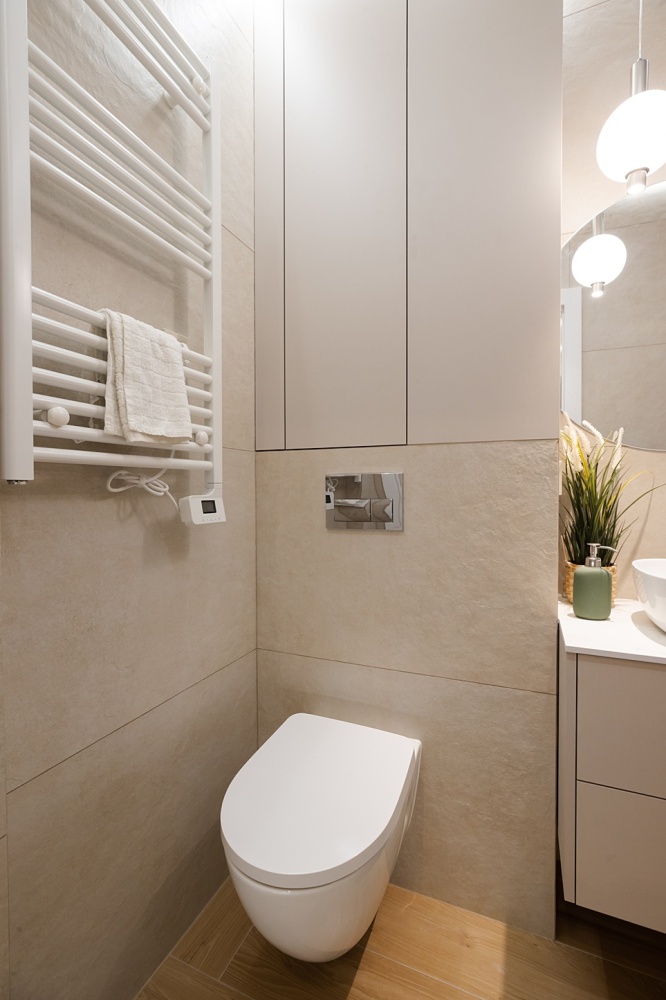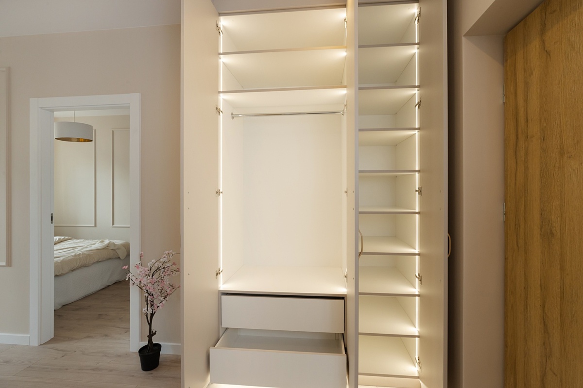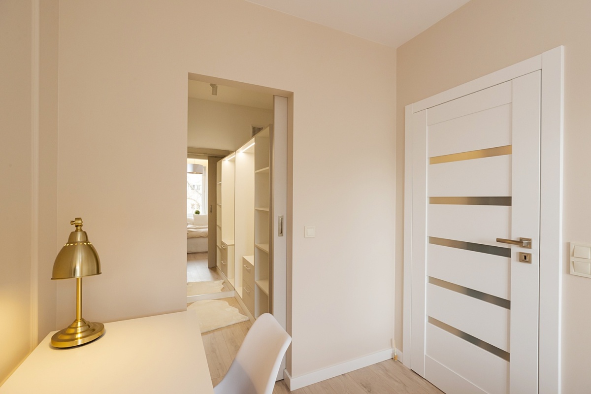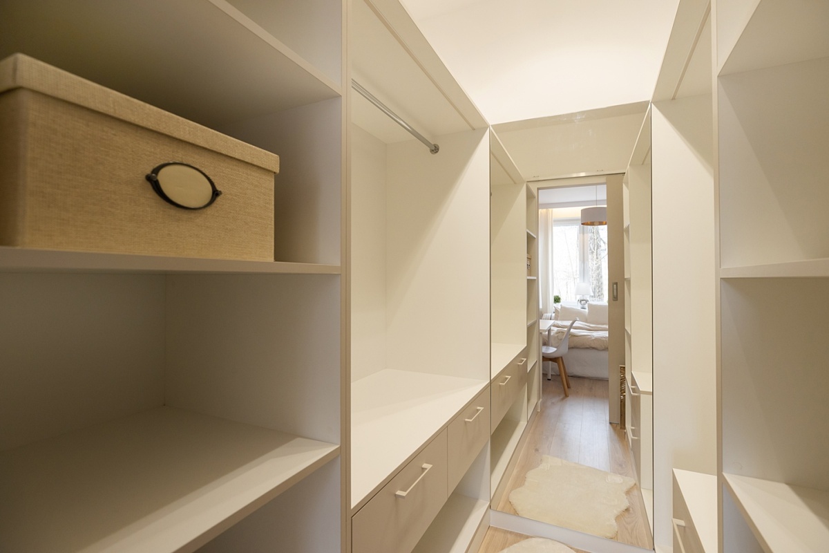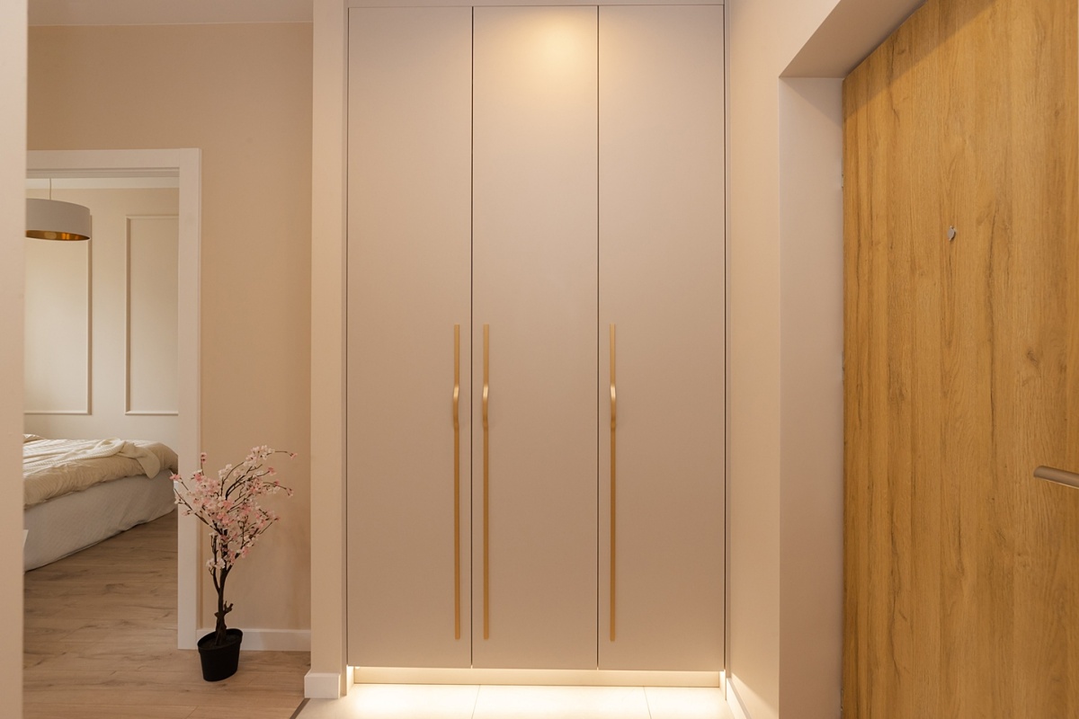 - Garderoba w sypialni i duża szafa w przedpokoju, pozwalają wygodnie zorganizować przestrzeń do przechowywania.