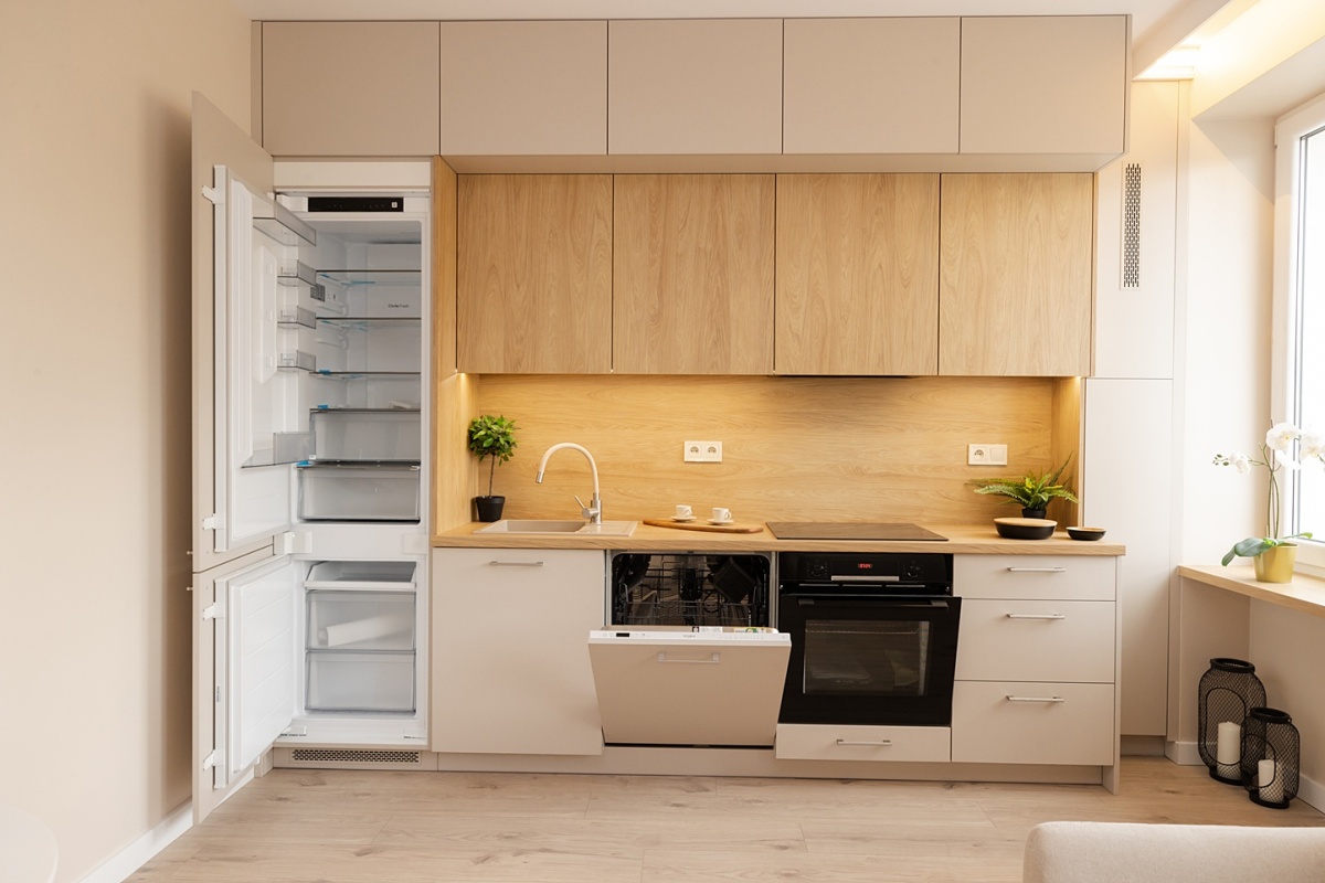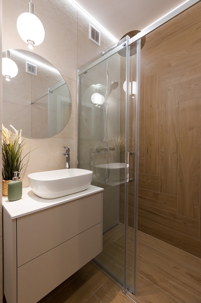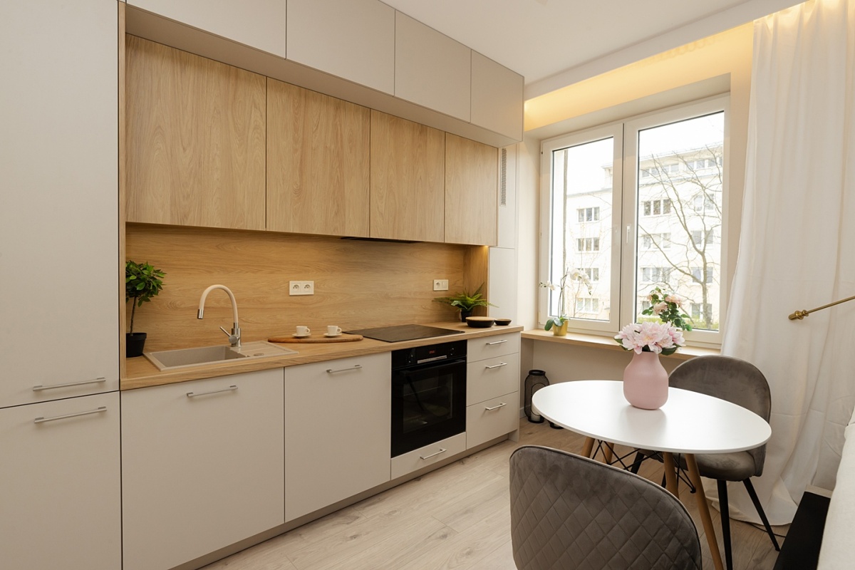 - Świeżo po generalnym remoncie – wszystko jest nowe: instalacja elektryczna i hydrauliczna, sufity podwieszane, wylewka, panele, płytki, armatura, drzwi, oświetlenie, zabudowy od stolarza i kuchnia na wymiar z pełnym wyposażeniem AGD na gwarancji (lodówka, zmywarka, piekarnik, płyta, okap, pralka, suszarka).