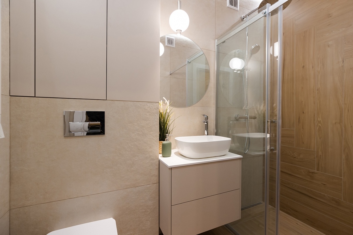 - Wysokość sufitów 265 cm daje poczucie większej przestrzeni i komfortu.