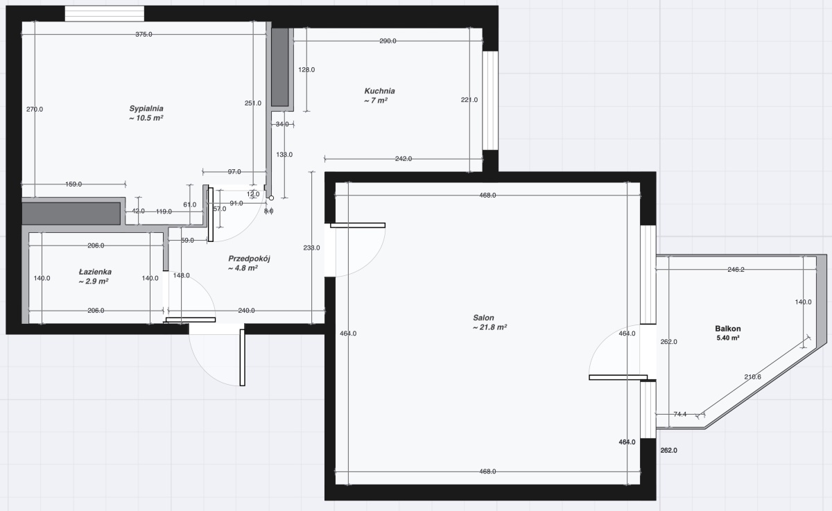 • 47 m² – dwa niezależne pokoje + osobna kuchnia + balkon