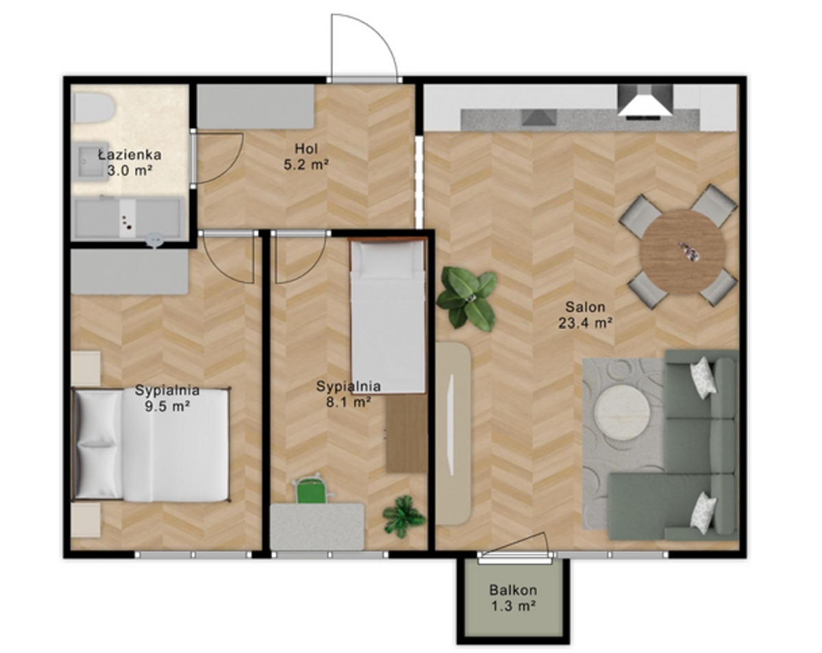 Układ: przestronny salon (25m2) z aneksem kuchennym oraz wyjściem na balkon, sypialnia (10m2), mniejszy pokój (8m2), łazienka (3m2) oraz przedpokój z szafą(5m2). Do mieszkania przynależy piwnica. Mieszkanie jest ciche, z ekspozycją zachodnią, położone na 7 piętrze - piękny widok na panoramę warszawskich wieżowców.