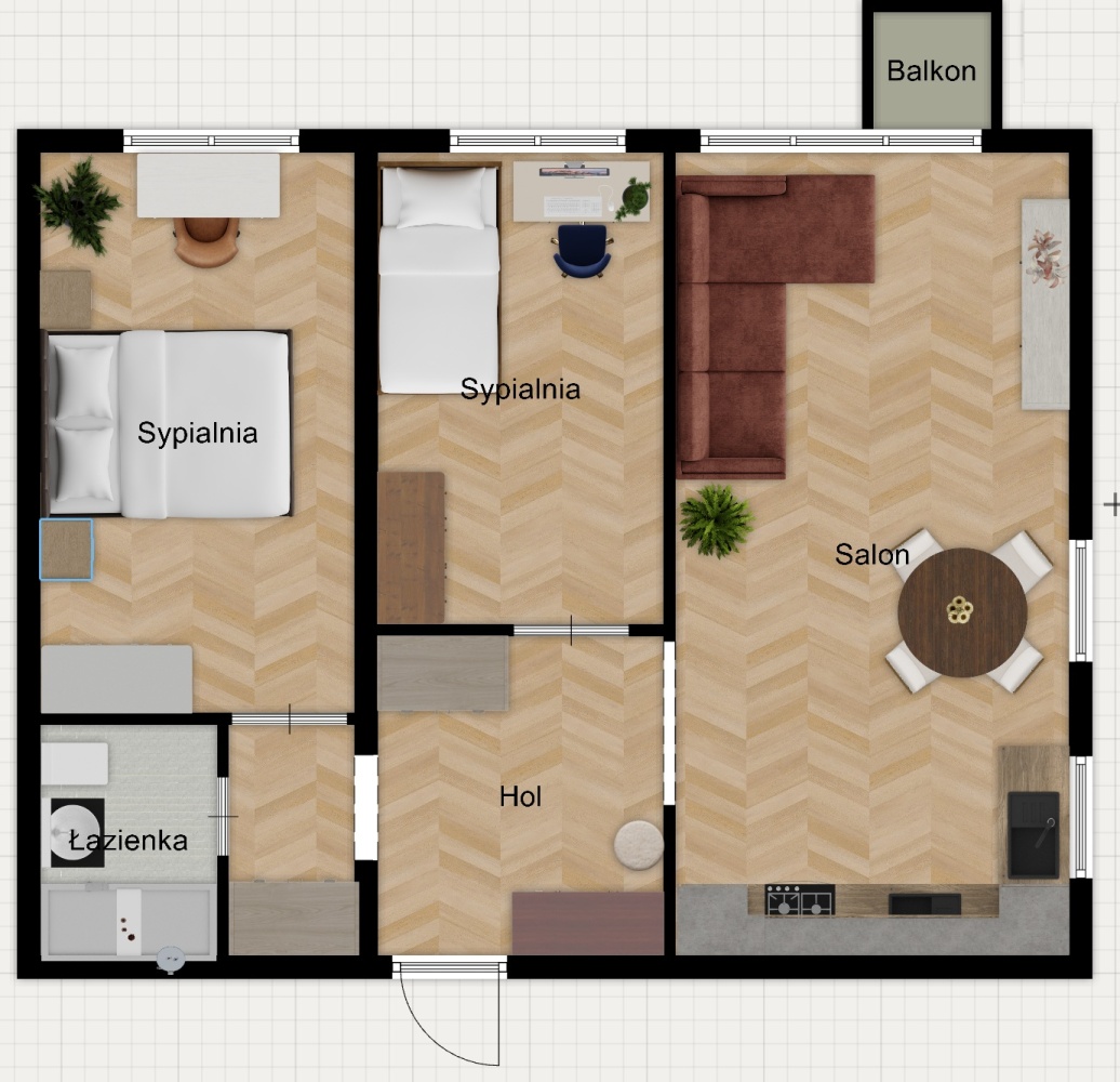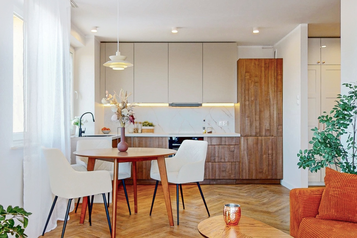 -przestrzenny salon (22m2) z dużym aneksem kuchennym - istnieje opcja oddzielenia kuchni od salonu, w pomieszczeniu aż 3 okna