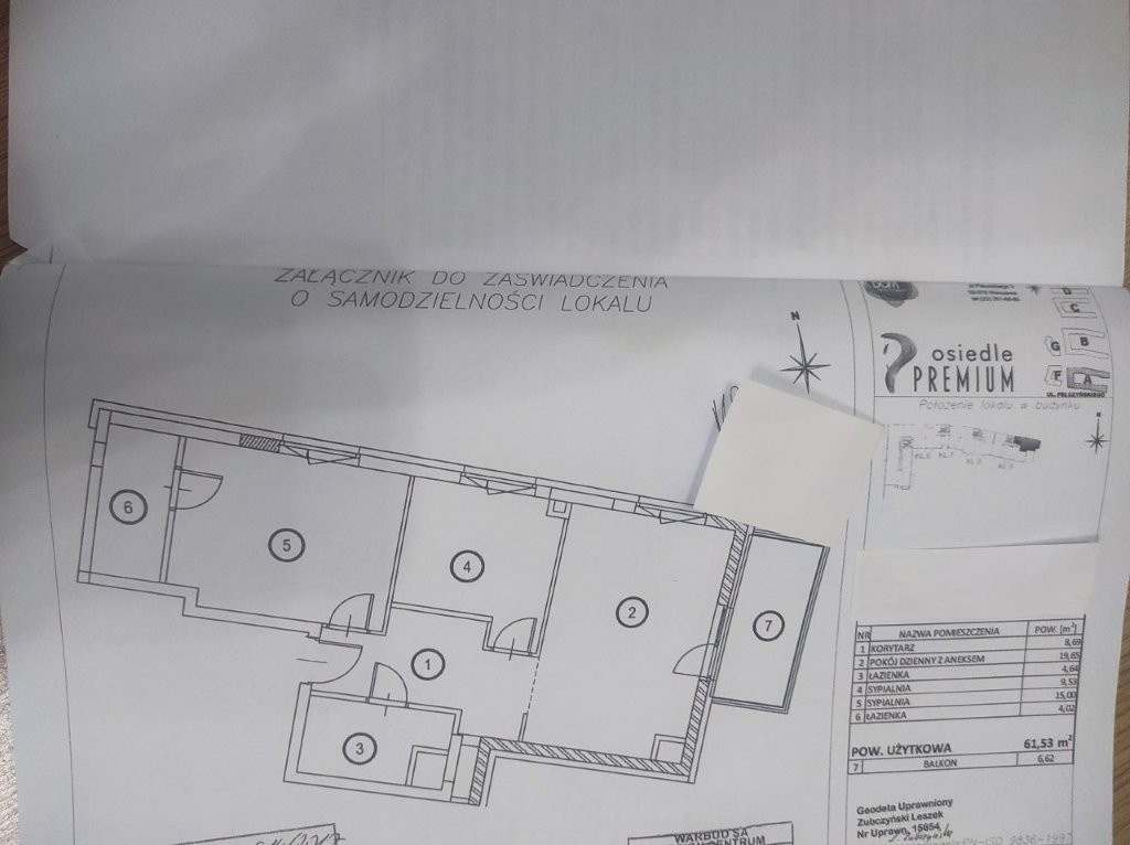 Powierzchnię mieszkania (61,53 m²) stanowią: